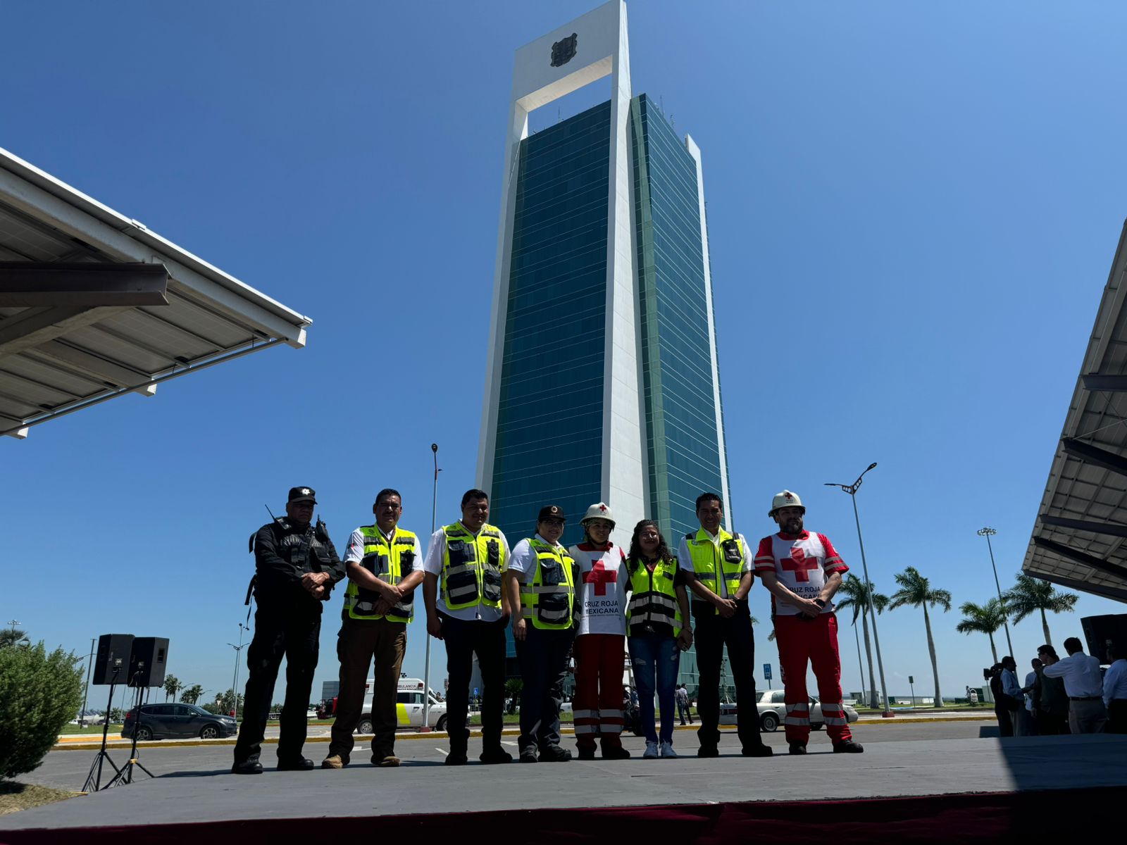 Durante el simulacro se realizó la evacuación de 2173 personas, las cuales iniciaron la activación de protocolos de respuesta a emergencias contando con el apoyo de dos unidades de Protección Civil del Estado, dos ambulancias de la Cruz Roja, una unidad de Centro de Regulación de Urgencias Médicas (CRUM), nueve unidades de Seguridad Pública, una unidad de Bomberos y 207 brigadistas voluntarios, logrando evacuar esta Torre Gubernamental en 14 minutos con 25 segundos.