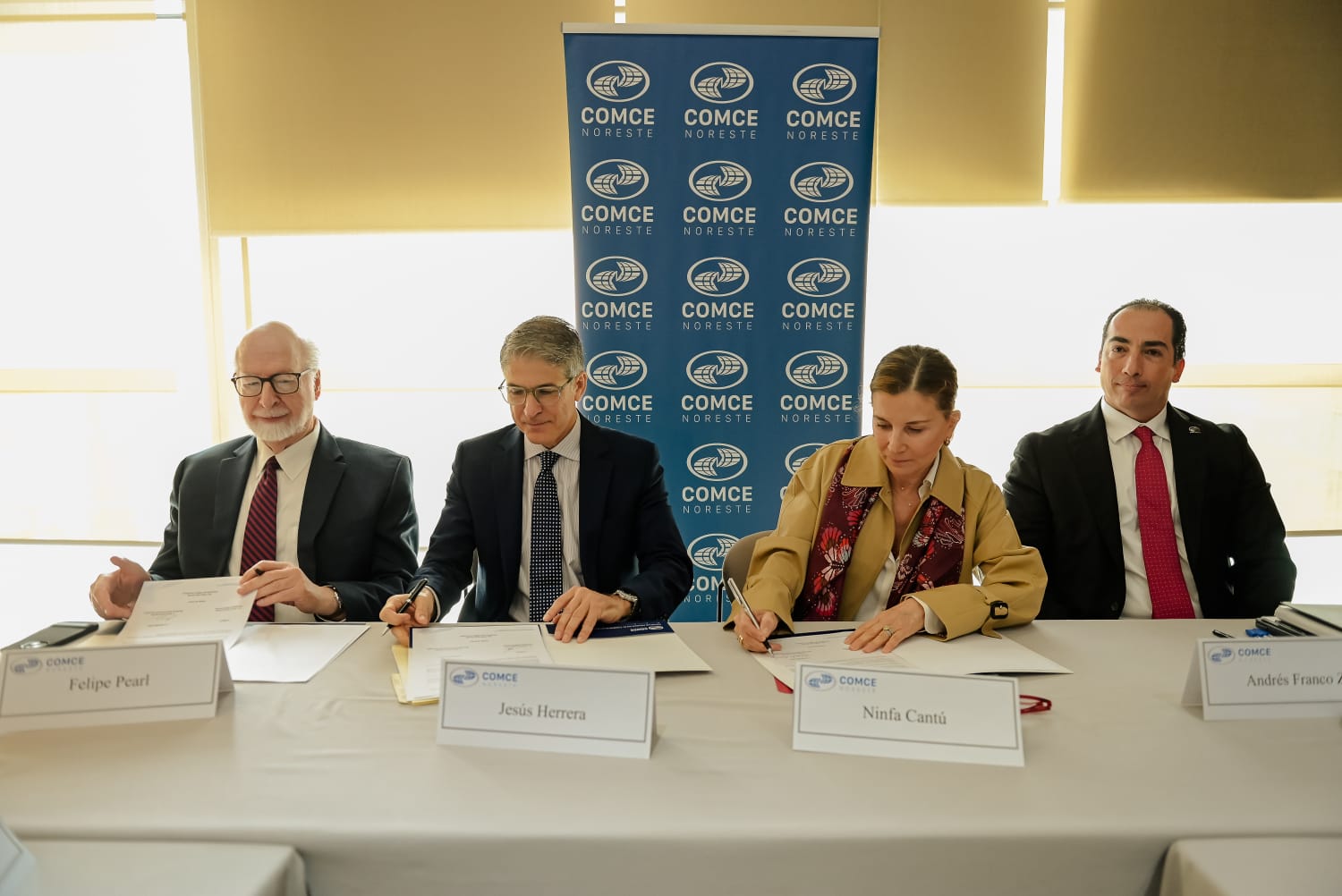 El convenio firmado junto con Felipe Pearl Zorilla, presidente de COMCE Tamaulipas y Andrés Franco, director COMCE Noreste, establece diversos objetivos como la cooperación en materia comercial e inversión para impulsar iniciativas que fomenten el crecimiento económico; la integración de cadenas productivas sostenibles; el desarrollo del mercado laboral y la promoción de infraestructura estratégica.