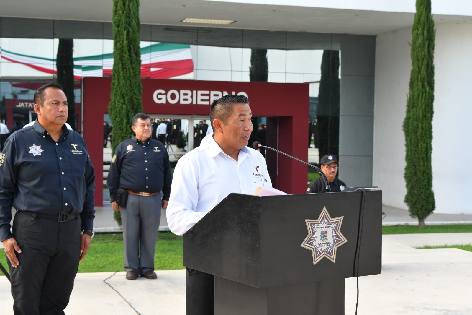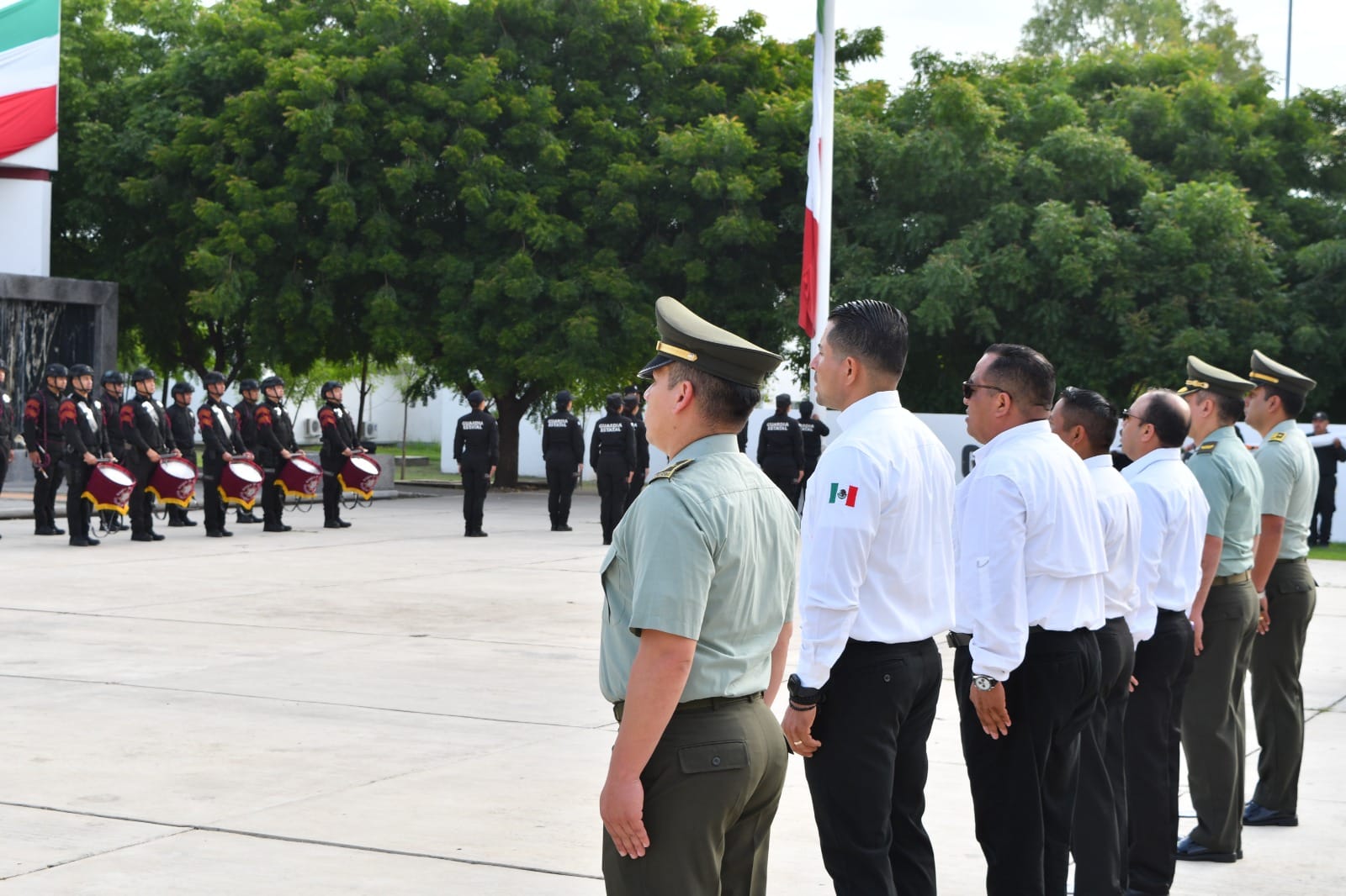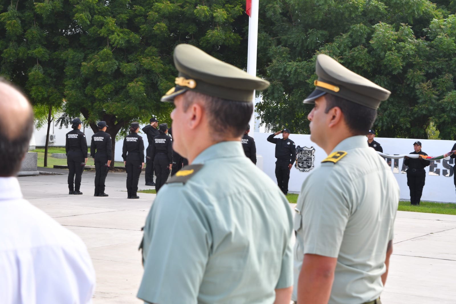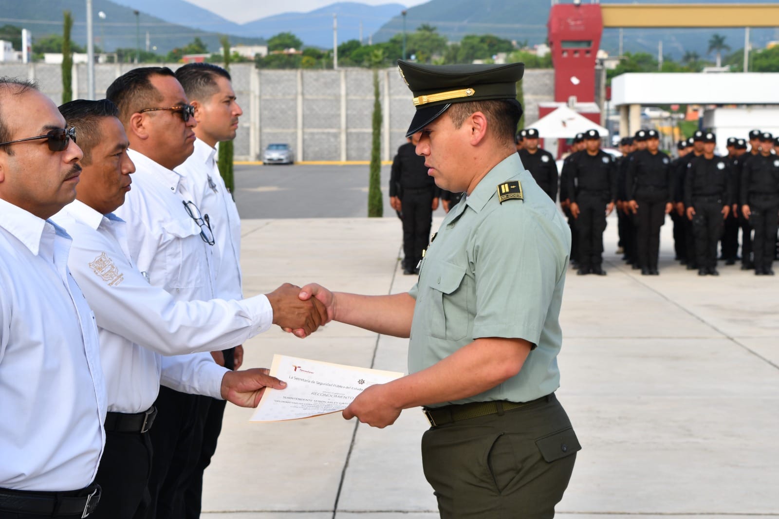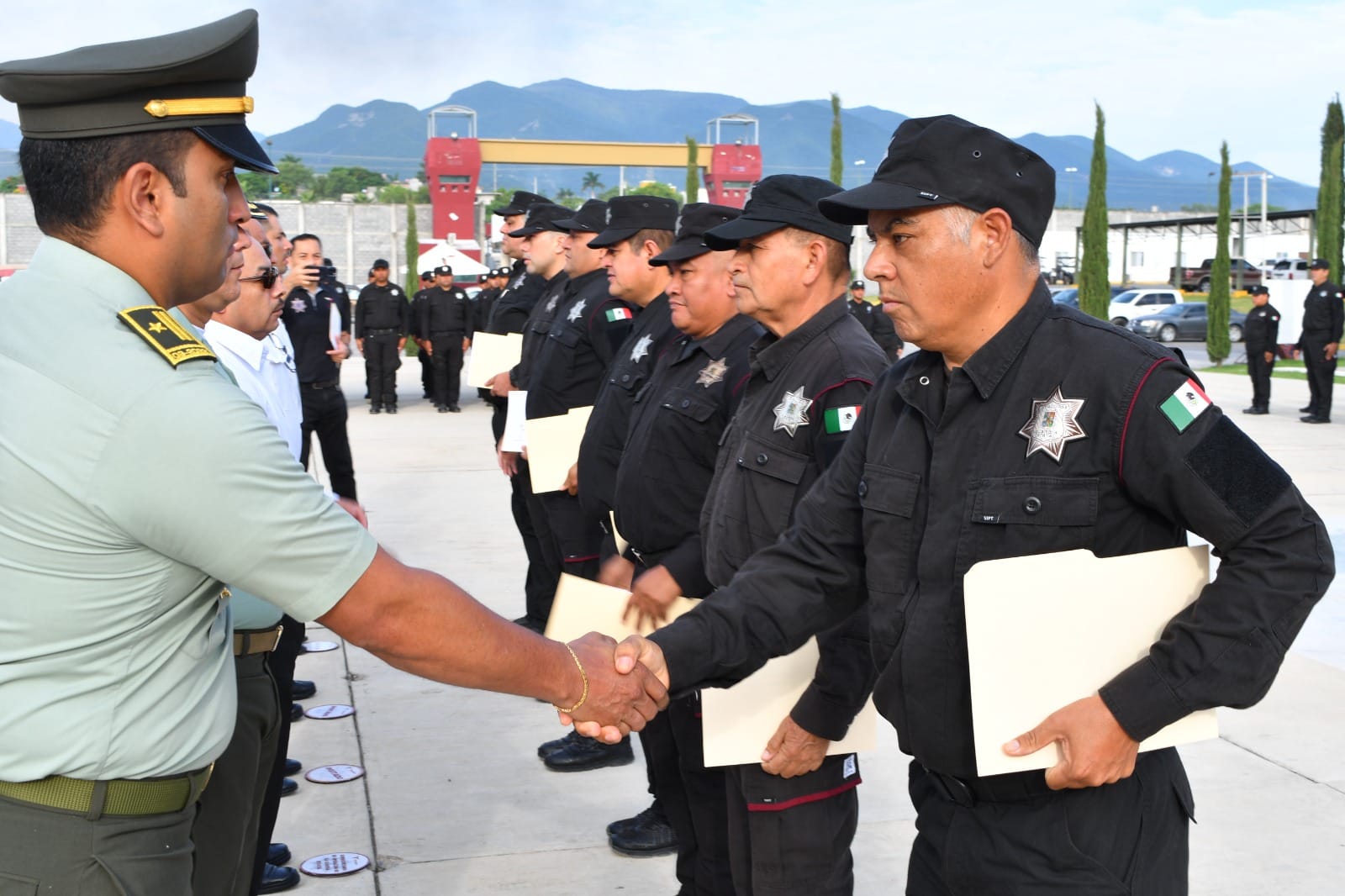 Con una ceremonia de honores celebrada en la explanada del Complejo Estatal de Seguridad Pública, se entregaron constancias al personal egresado y a los instructores de la Dirección de Antinarcóticos de la Policía Nacional de Colombia: Mayor, José Luis Saboya Fonseca; subintendente, Juan Carlos Campo Ortiz y el subintendente, Yeison Arley García Castañeda.