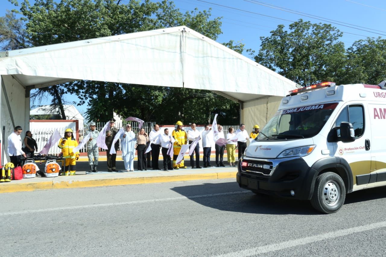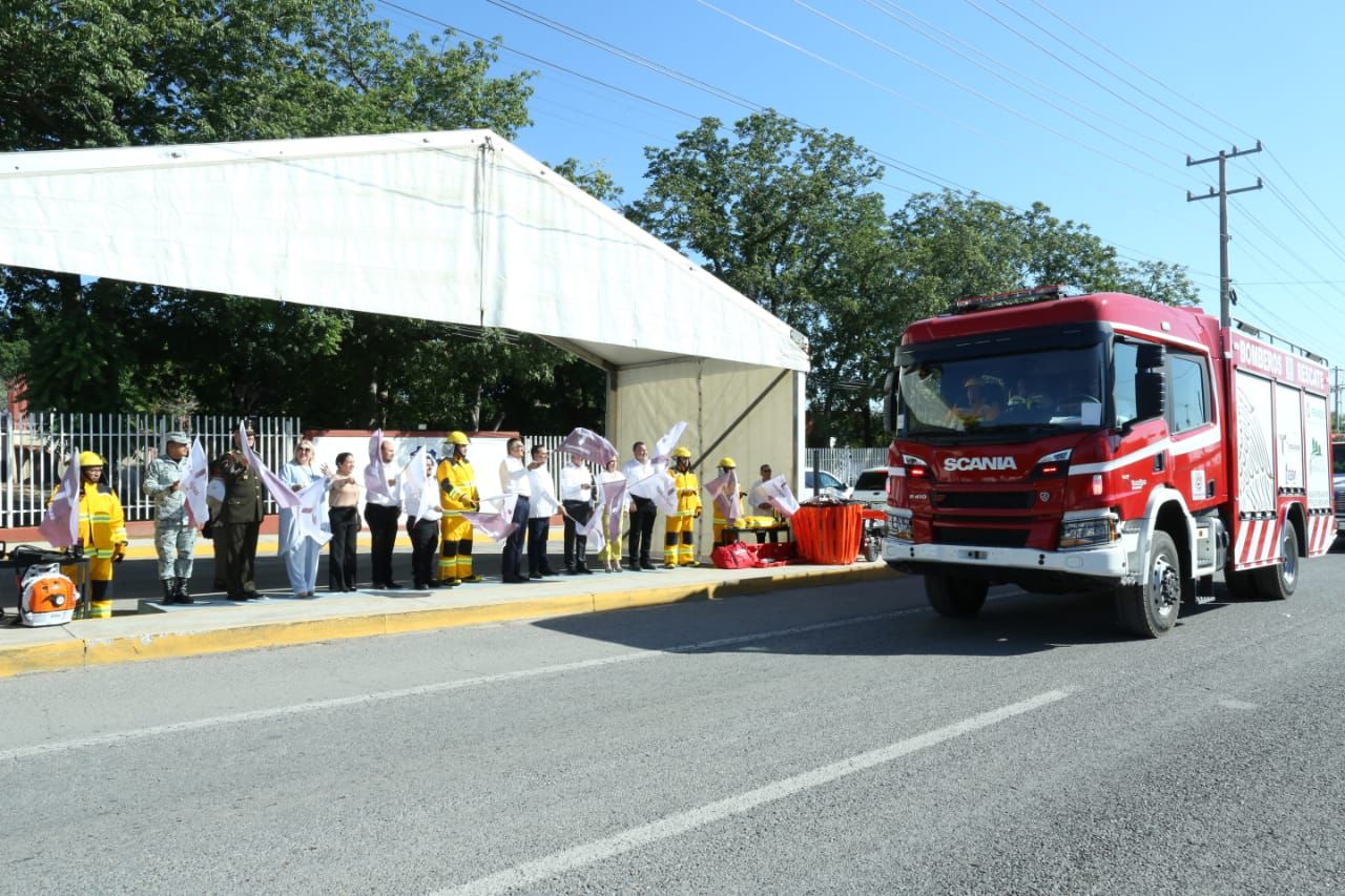 Al término de la ceremonia, el gobernador entregó al coordinador estatal de Protección Civil, Luis Gerardo González de la Fuente, un camión multipropósito contra incendio, rescate y extracción vehicular, así como 70 equipos de protección personal; 8 sopladoras; 8 motosierras; 5 levantadores mecánicos; 5 herramientas sierra sable, 2 generadores de energía y 1 bambi bucket (contenedor de agua aéreo) con capacidad de hasta 1,000 litros de retardante.