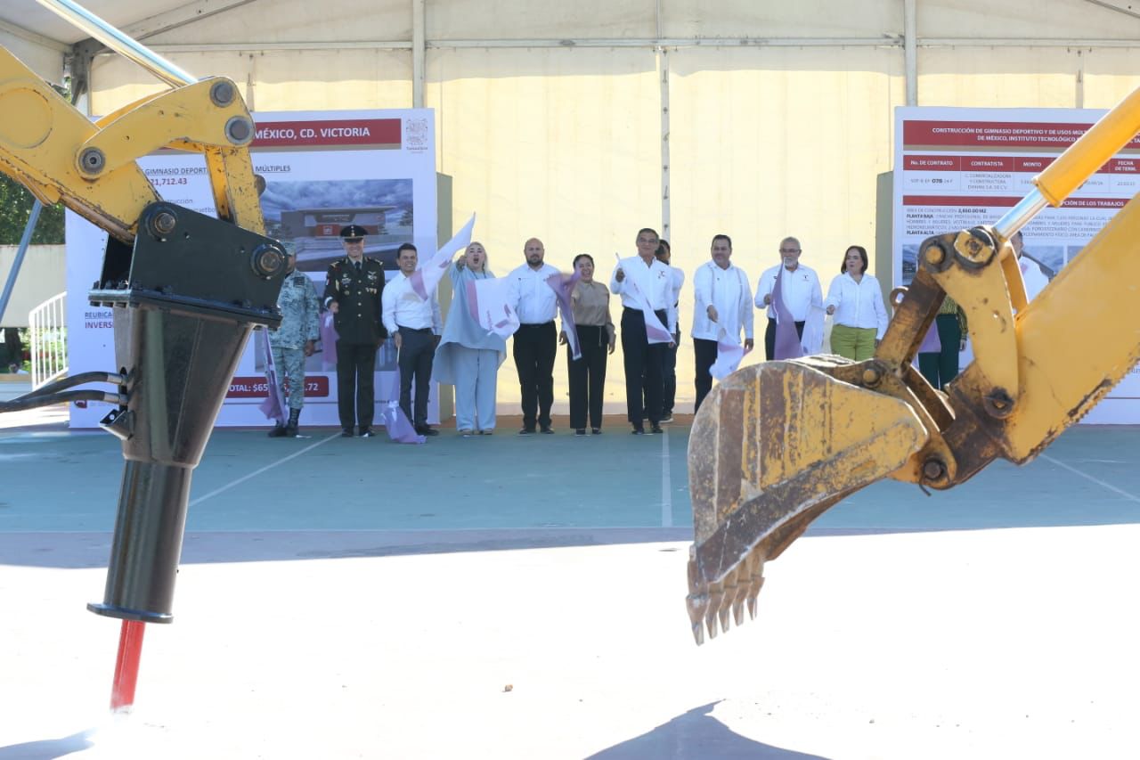 El gobernador Américo Villarreal Anaya dio el banderazo de inicio a la construcción del nuevo gimnasio del Instituto Tecnológico de Victoria y llamó a las y los estudiantes a prepararse para poder participar en las grandes oportunidades que existen en esta época de transformación con visión humanista.