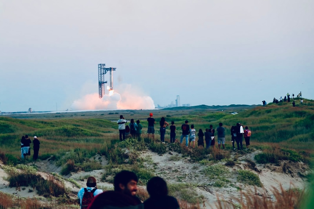 El alcalde Alberto Granados Fávila estuvo presente en la Playa Bagdad de Matamoros, donde cientos de personas se reunieron para presenciar el histórico lanzamiento del cohete Starship de la agencia SpaceX, liderada por Elon Musk.