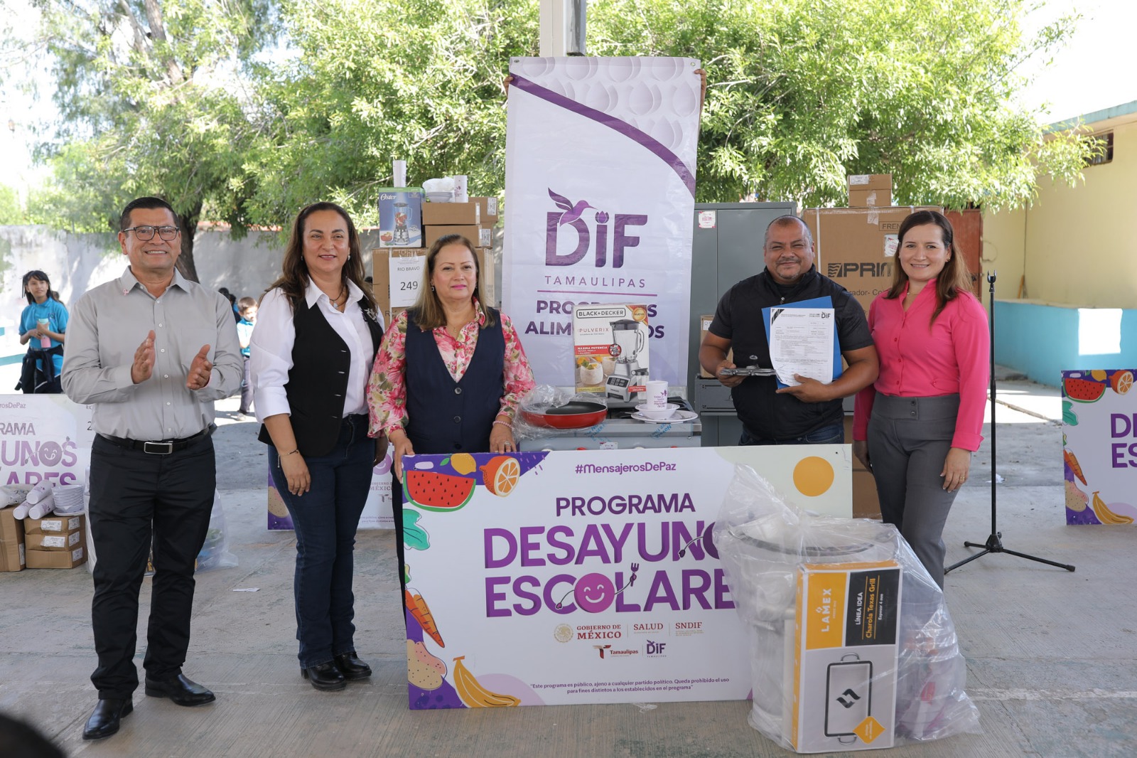 El Sistema para el Desarrollo Integral de la Familia en Tamaulipas, presidido por la doctora María de Villarreal, realizó la segunda etapa de entrega de equipo y mobiliario para desayunadores escolares y comedores comunitarios en 17 municipios de Tamaulipas, a fin de garantizar el derecho a una alimentación sana a niñas, niños y personas en condiciones de vulnerabilidad.