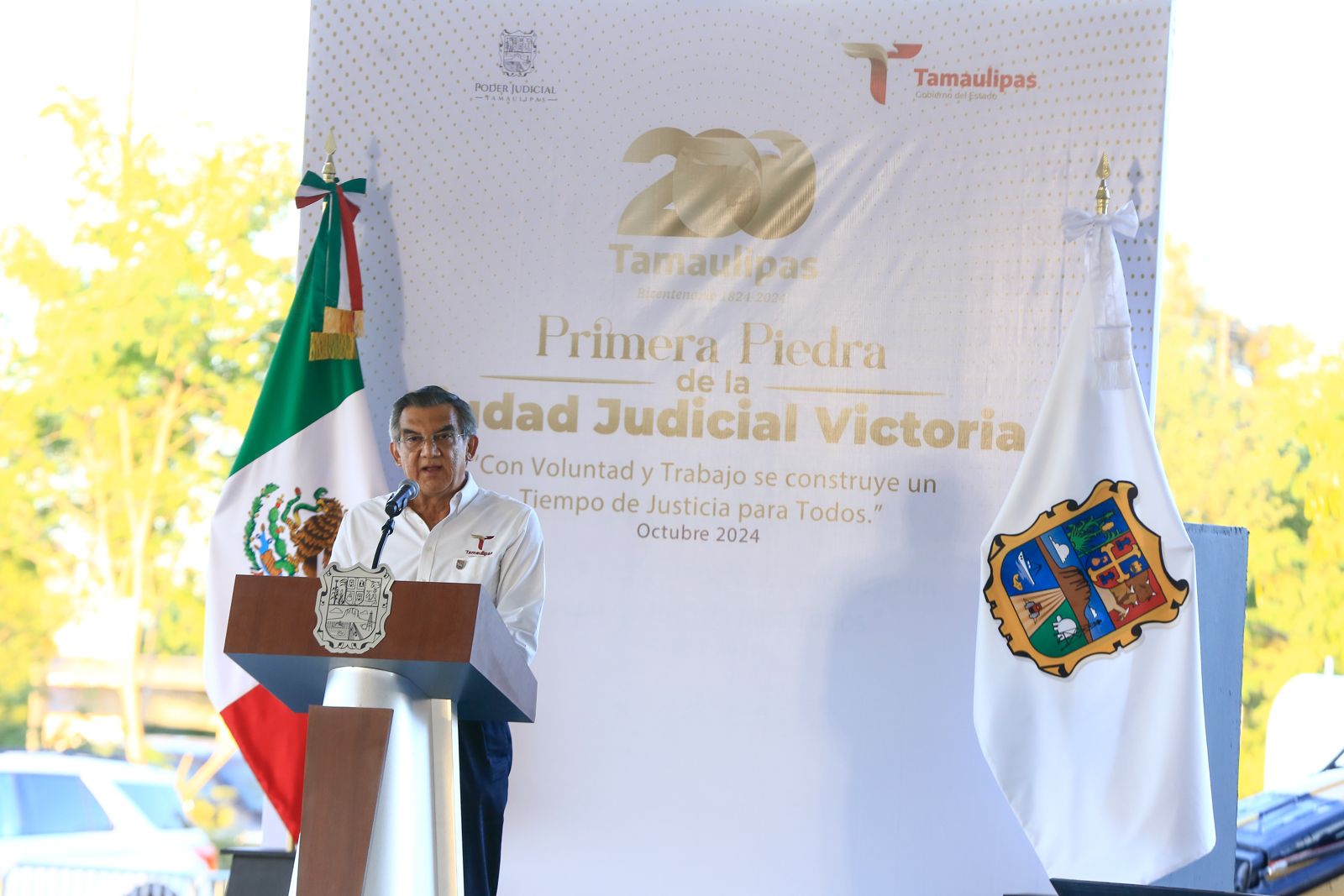 Junto al presidente del Supremo Tribunal de Justicia y del Consejo de la Judicatura, magistrado David Cerda Zúñiga, el gobernador afirmó que la construcción de la obra que inicia hoy representa la perspectiva con la que se debe trabajar por la consolidación de un estado de derecho y continuar por el camino del diálogo y la colaboración permanente entre los poderes del estado de Tamaulipas, sobre todo en la coyuntura actual tras la reforma al Poder Judicial, que busca indudablemente una renovación estructural, “la cual, no tenemos la menor duda, será para mejorar y alcanzar una justicia más ágil y expedita”.