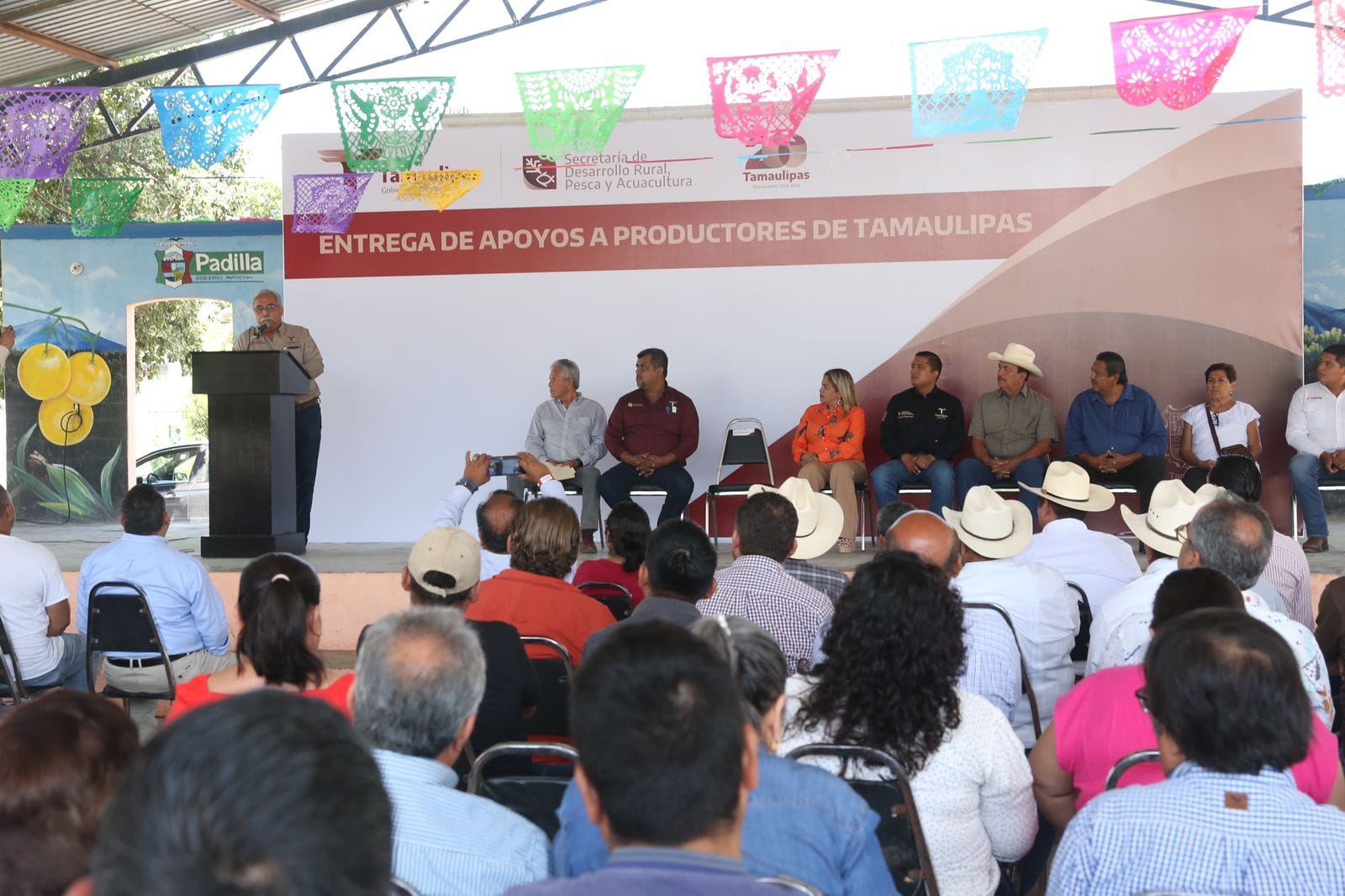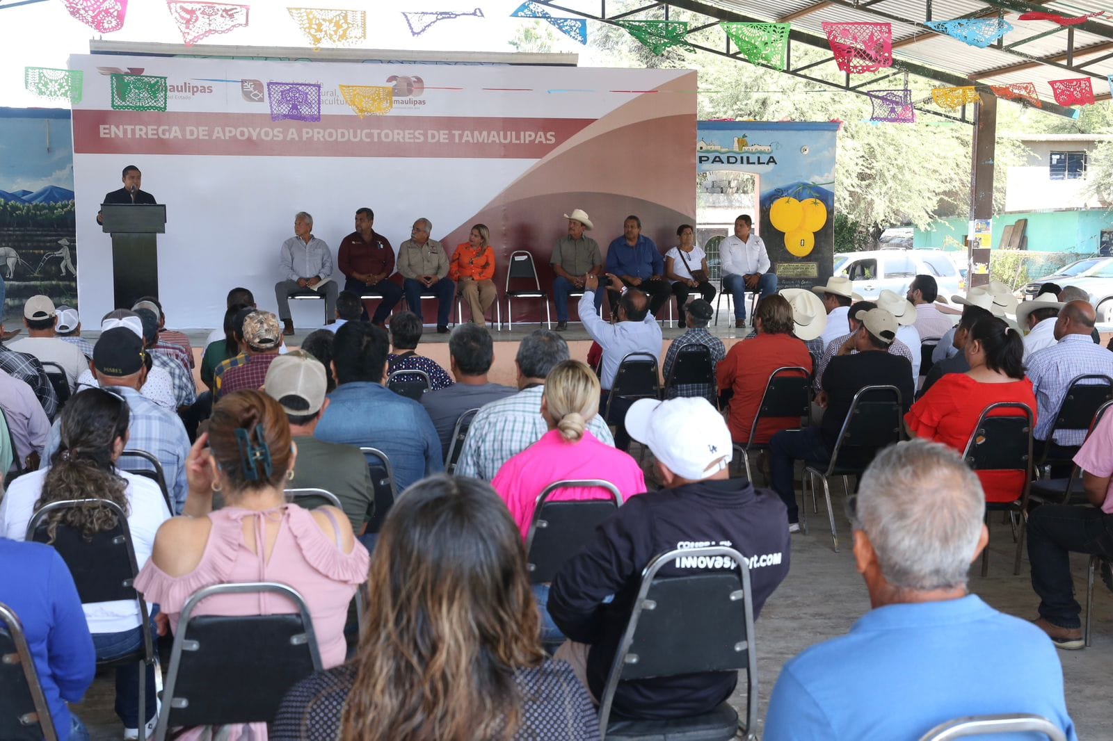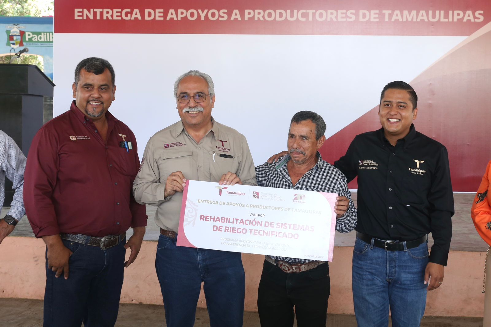 El evento contó con la presencia de Eliseo Camacho Nieto, subsecretario de Desarrollo Agrícola; Verónica Macarena Morales Saldívar, en representación del alcalde del municipio de Padilla; Rigoberto Rendón Cepeda, en representación del presidente municipal de Hidalgo; José Ángel Landeros Esquivel, coordinador jurisdiccional de la COEPRIS número 11; Juan Castillo, delegado de Bienestar Social en Padilla; María Hortensia Perales Reyna, presidenta del comisariado Ejidal de Mártir de Chinameca, además de productores beneficiados.