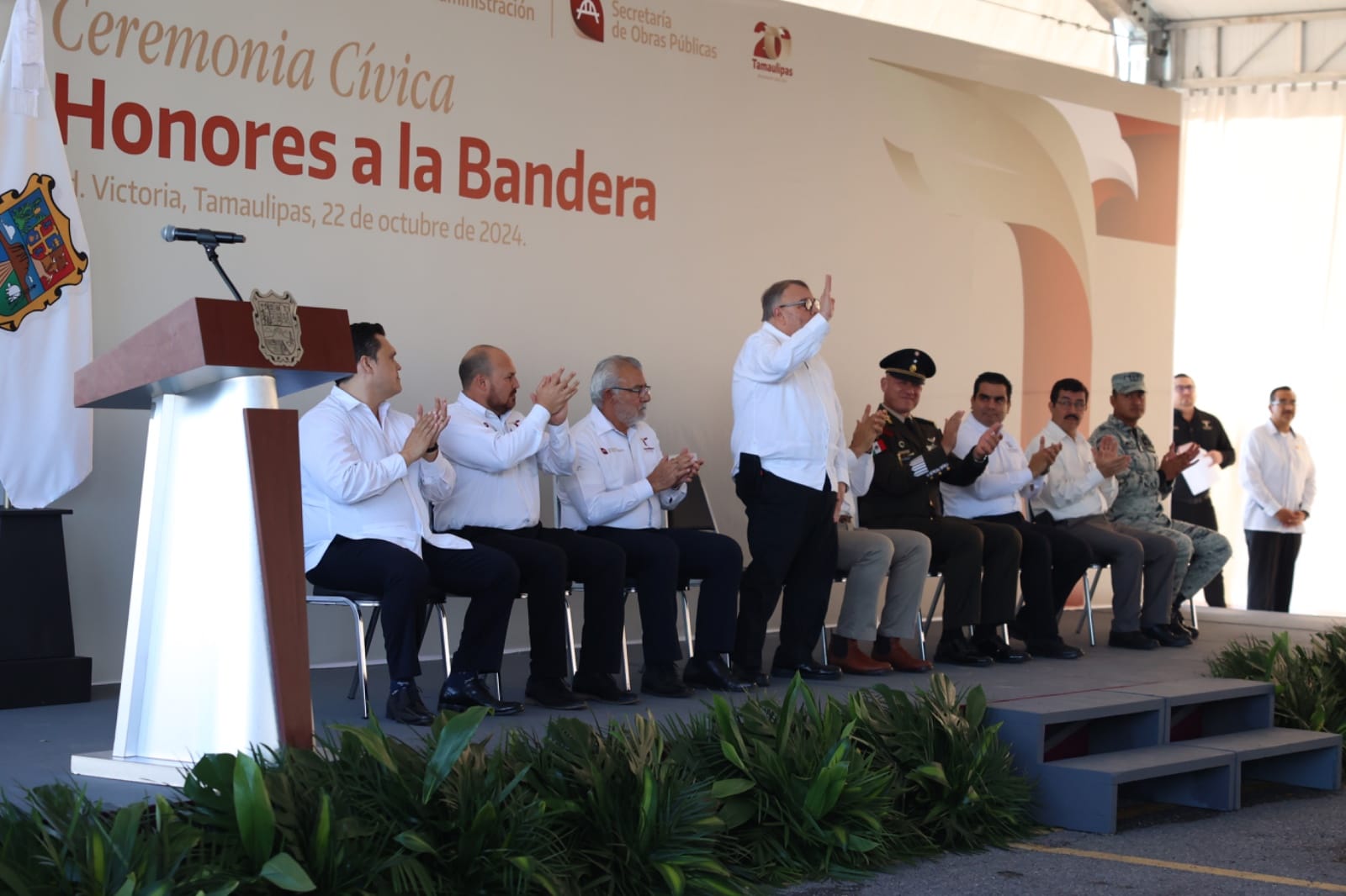En el marco de los honores a los símbolos patrios encabezados por el gobernador, Américo Villarreal Anaya, el secretario de Administración Jesús Lavín Verástegui compartió avances en materia de administración pública, la cual está guiada por los principios de honestidad, austeridad y responsabilidad, pilares fundamentales de la transformación que vive Tamaulipas.