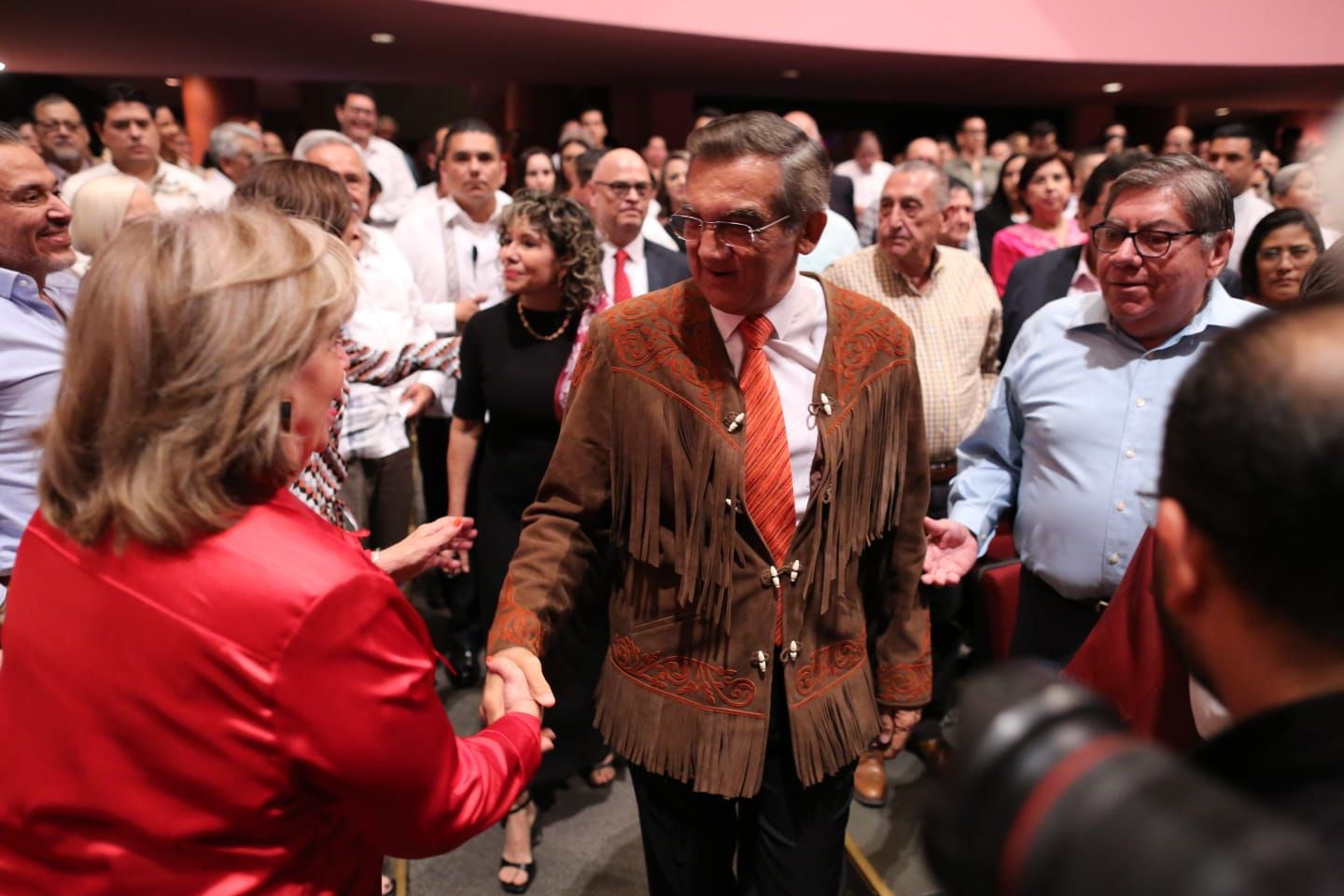 En la ceremonia protocolaria también acompañó al gobernador, Silvia Casas González, secretaria de Bienestar Social, además de legisladores, funcionarios y la representante de la comunidad artística del estado.