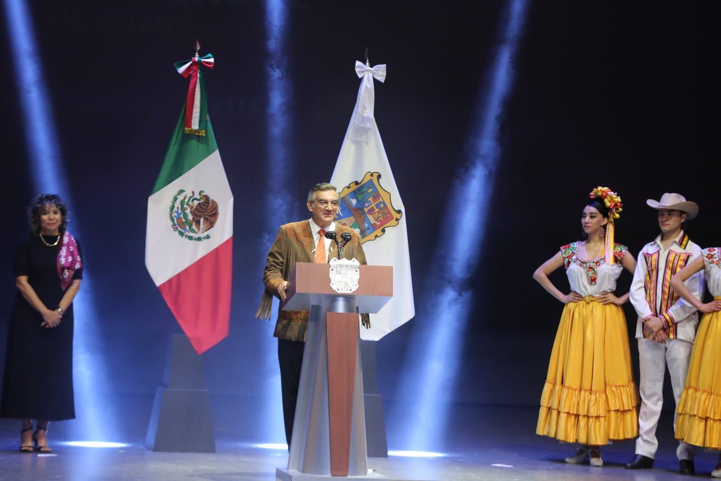 Acompañado por la presidenta del Sistema DIF Estatal, María de Villarreal, en el teatro Amalia G. de Castillo Ledón, el gobernador del estado recordó que este festival fue instaurado por el gobierno de Américo Villarreal Guerra y reactivado hace un año, para recuperar y preservar la herencia cultural de Tamaulipas y su gente.