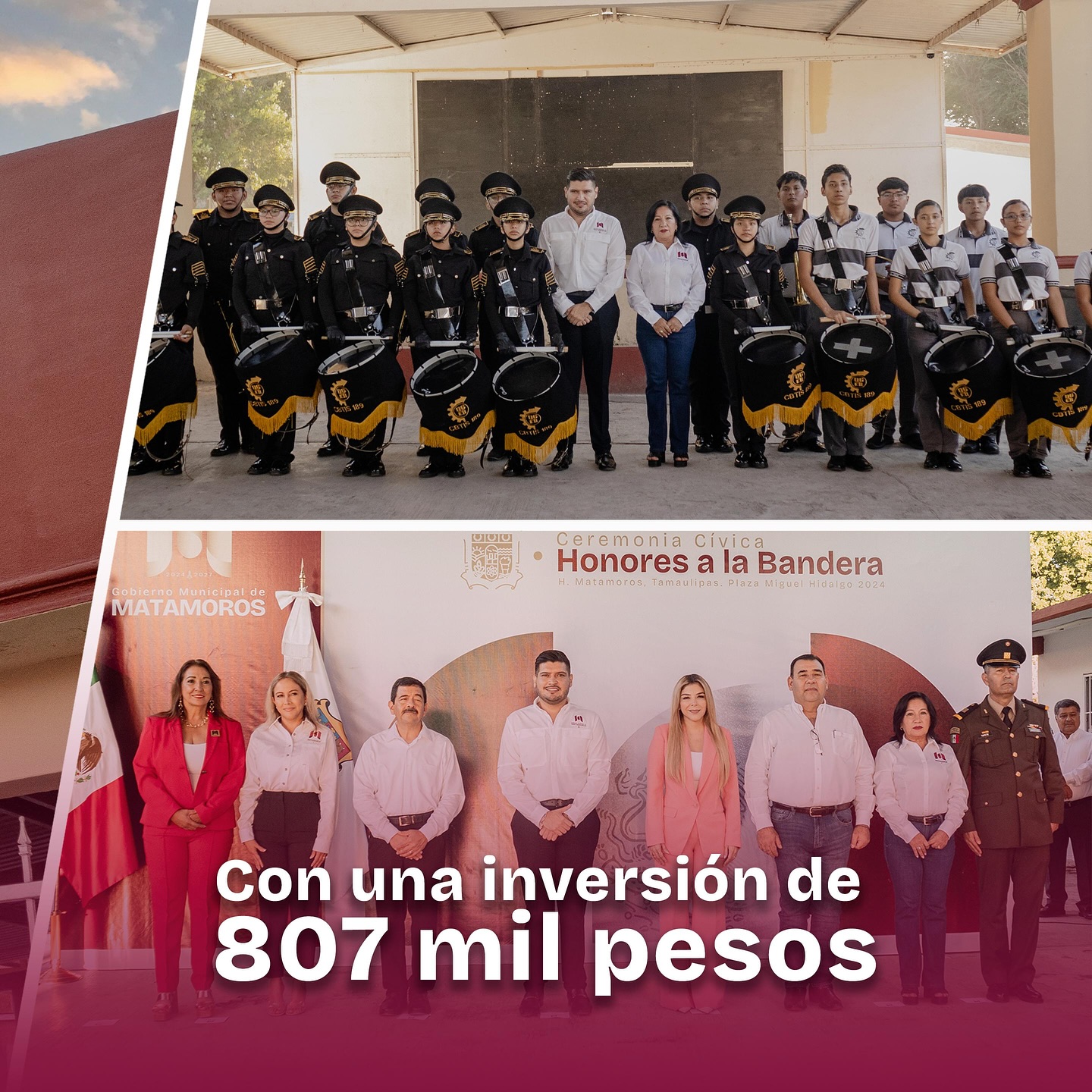 El alcalde de Matamoros, Alberto Granados Fávila, encabezó honores a la bandera en la Escuela Primaria México Agrario y anunció una inversión de más de 10 millones de pesos para mejorar planteles educativos.