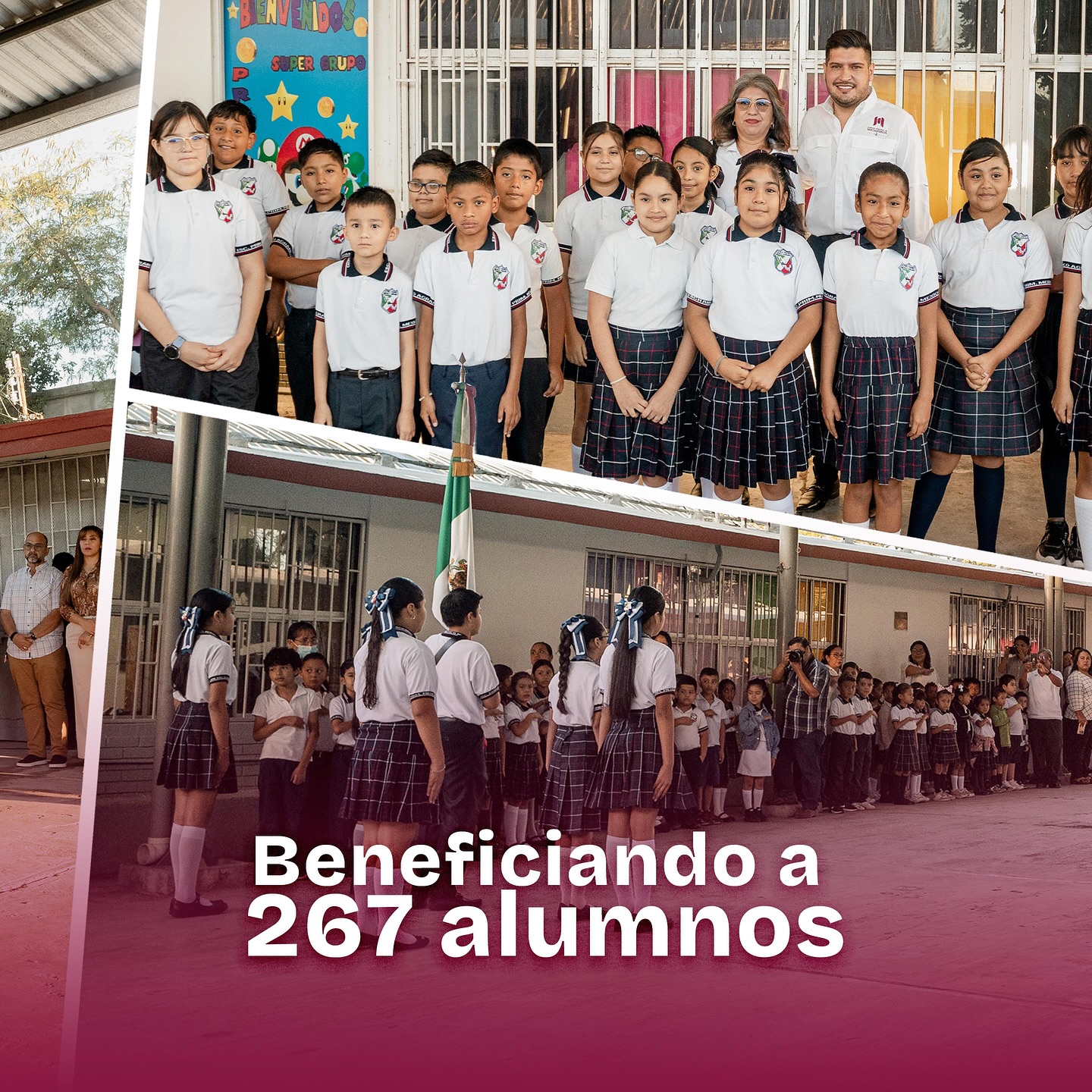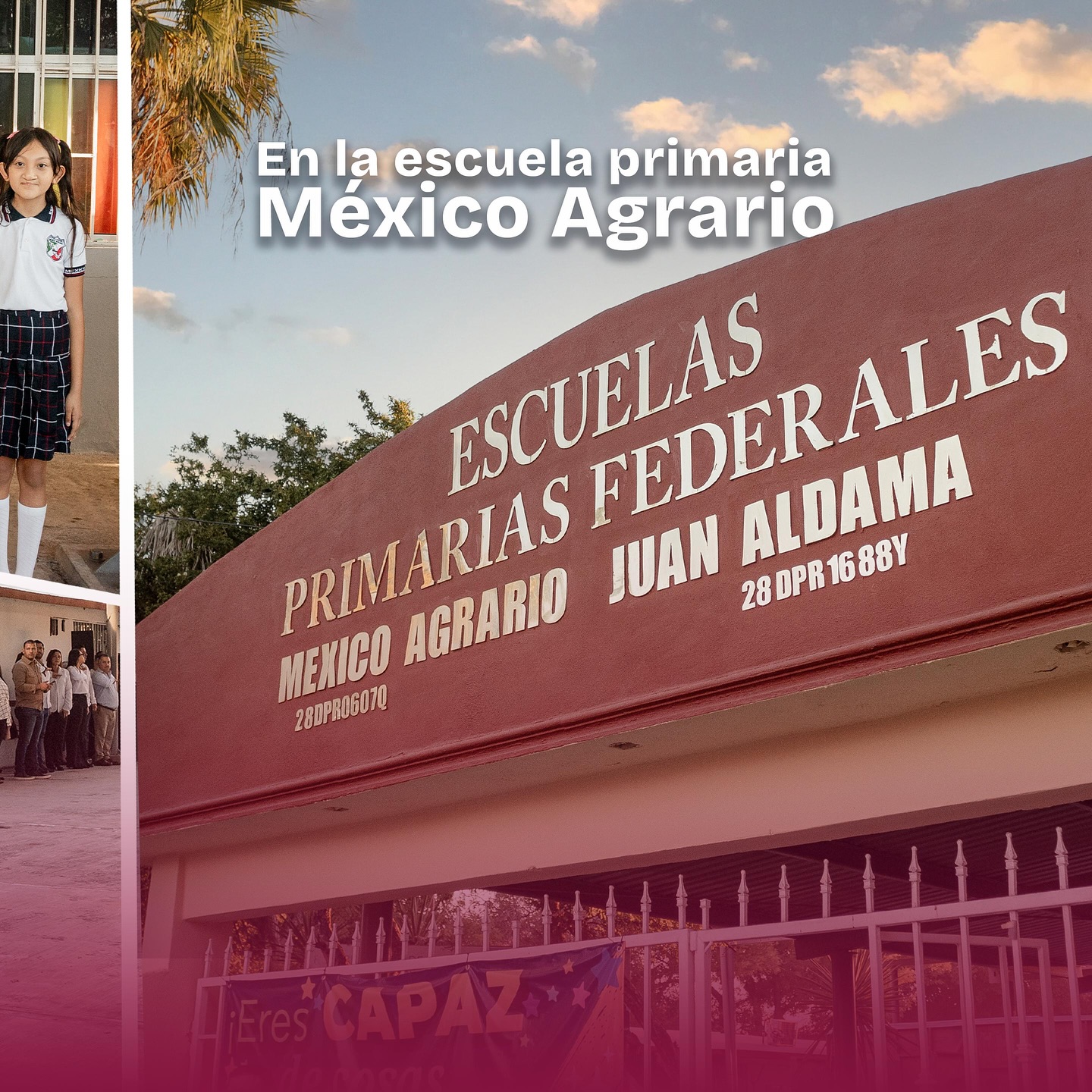 En un acto de compromiso y respeto a los símbolos patrios, el alcalde Alberto Granados Fávila encabezó los honores a la bandera en la Esc. Primaria México Agrario del ejido del mismo nombre. Durante la ceremonia, el presidente municipal resaltó la importancia de fortalecer los valores cívicos en las nuevas generaciones y reafirmó el apoyo del Gobierno Municipal a la educación.