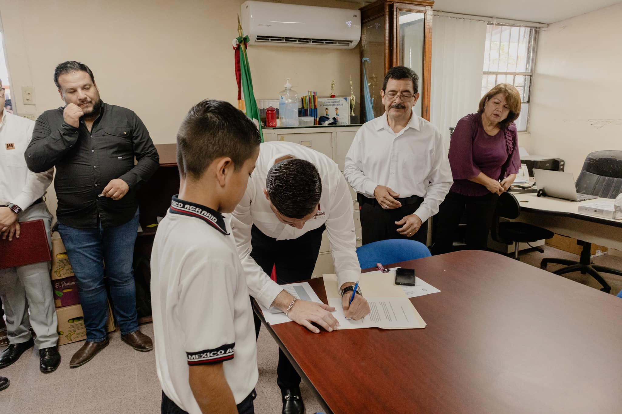El alcalde dio la buena noticia de que no solo la escuela primaria del Ejido México Agrario se verá beneficiada, sino también la Telesecundaria «José Emilio Pacheco», del fracc. Los Presidentes, Jardín de Niños «Club Activo 20-30» de la Col. Treviño Zapata, Esc. Prim. «José Doroteo Arango» del Fracc. Pueblitos, Jardín de Niños»Beatriz Amanda Pineda» de la Col. Alberto Carrera Torres.