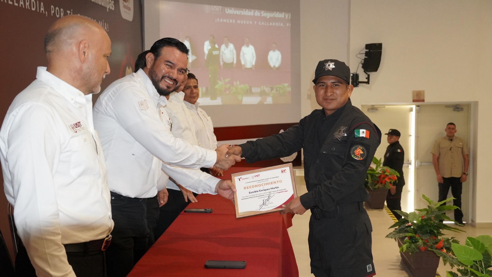 El rector de la USJT, Willy Zúñiga Castillo, informó que por instrucción del gobernador Américo Villarreal Anaya y del secretario, Sergio Hernando Chávez García, la capacitación está basada en el humanismo y el pleno respeto a los derechos humanos, con acciones de proximidad a la sociedad para seguir manteniendo la confianza de los tamaulipecos en las corporaciones policiales.