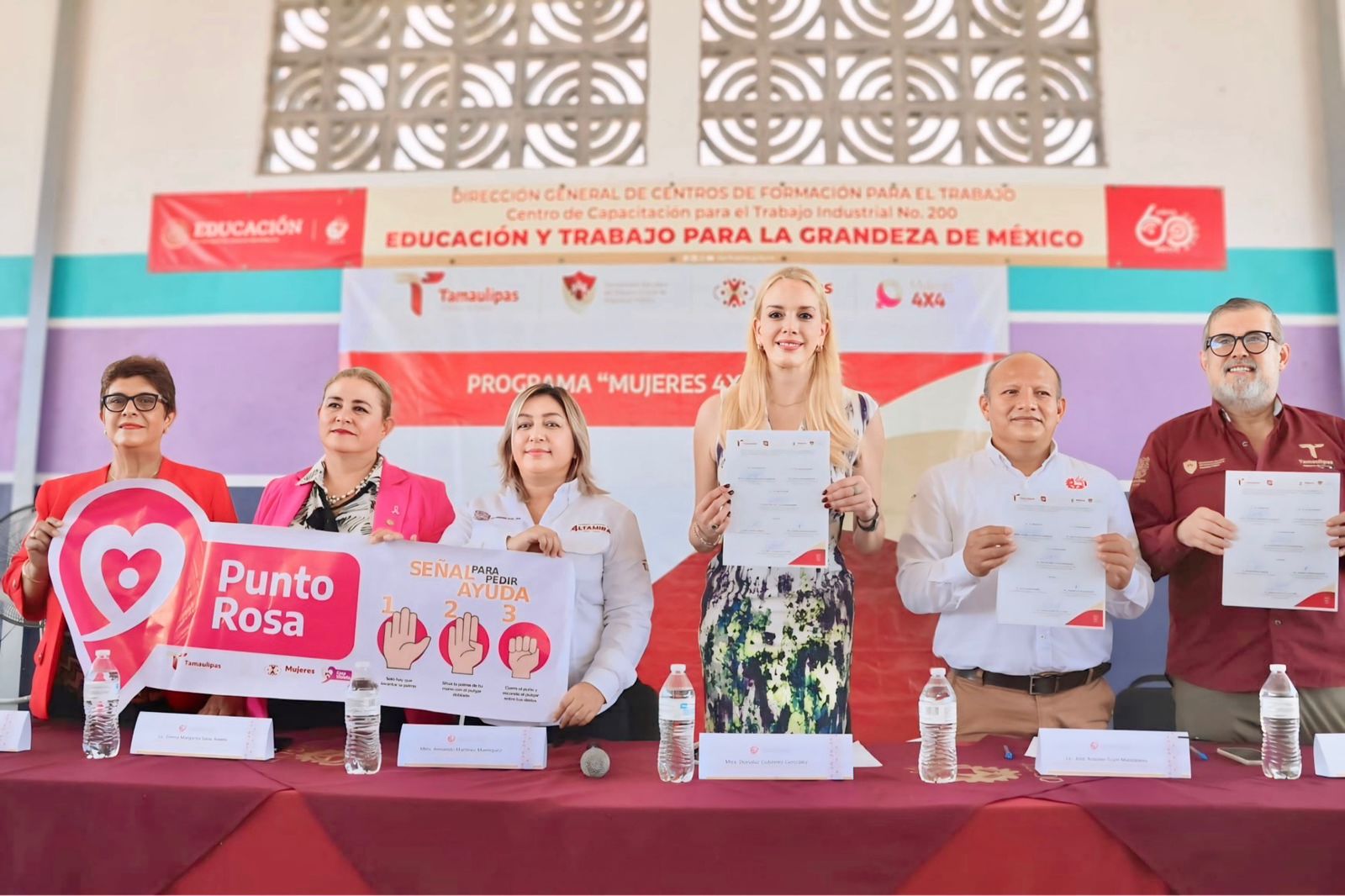 En un esfuerzo comprometido con el empoderamiento de las mujeres y la erradicación de la violencia de género, este miércoles se realizó la ceremonia de clausura del programa Mujeres 4×4 junto con la firma de un convenio entre el Instituto de las Mujeres en Tamaulipas y Punto Rosa en el Centro de Capacitación para el Trabajo Industrial (CECATI) No. 200, en Altamira.