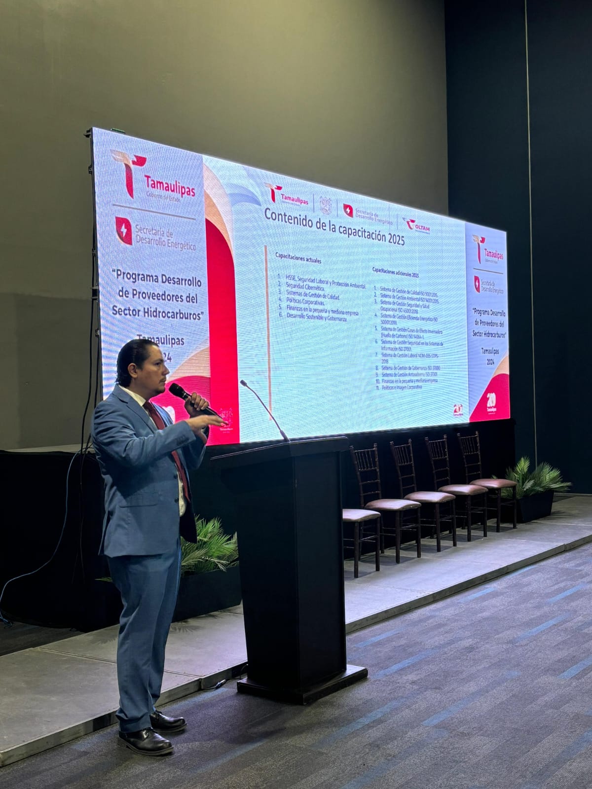 Al evento asistieron Alejandro Rodríguez Contreras, secretario técnico y encargado del despacho de la Subsecretaría de Hidrocarburos de la SEDENER; Abelardo Flores Mendoza, subsecretario del Empleo y Previsión Social de la Secretaría del Trabajo; Daniel Sosa Carpio, delegado de la zona norte de la Secretaría de Economía de Tamaulipas; Mauricio Treviño Garza, secretario de Desarrollo Económico y del Empleo de Reynosa; Constantino Castillo Hinojosa, presidente del Clúster Internacional de Energía Tamaulipas-Texas y Miguel Leiva Amour, presidente del Clúster de Desarrollo Energético.