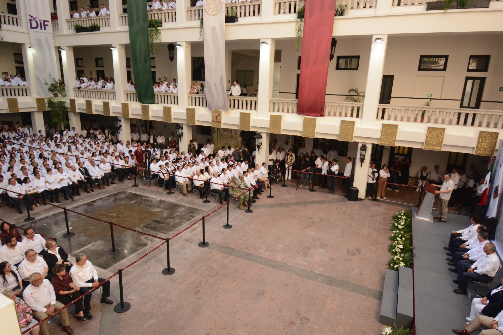 “Nunca como ahora y siendo yo compañero de ustedes en el sector salud, hemos visto que desde la política nacional haya tanto empeño y tanta dedicación para mejorar el sistema de salud que merecemos los mexicanos y mexicanas. Así es que nosotros tenemos que sumarnos a este gran esfuerzo nacional y distinguirnos en Tamaulipas como médicos y médicas, trabajadores de la salud, para que podamos salir adelante y brindar estos niveles”, manifestó.