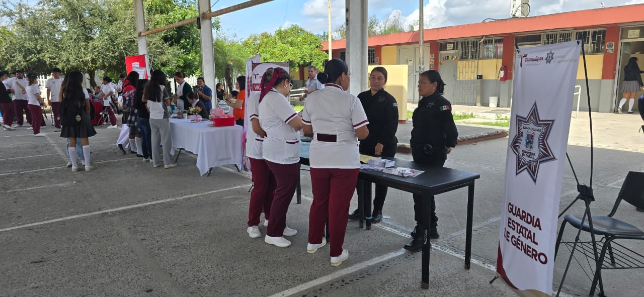 Como parte de la Brigada “Mujeres Libres de Violencia”, organizado por el Instituto Municipal de la Mujer, personal de la Guardia Estatal de Género visitó el plantel 275 del Centro de Bachillerato Tecnológico, Industrial y de Servicios (CBTIS) ubicado en Matamoros.