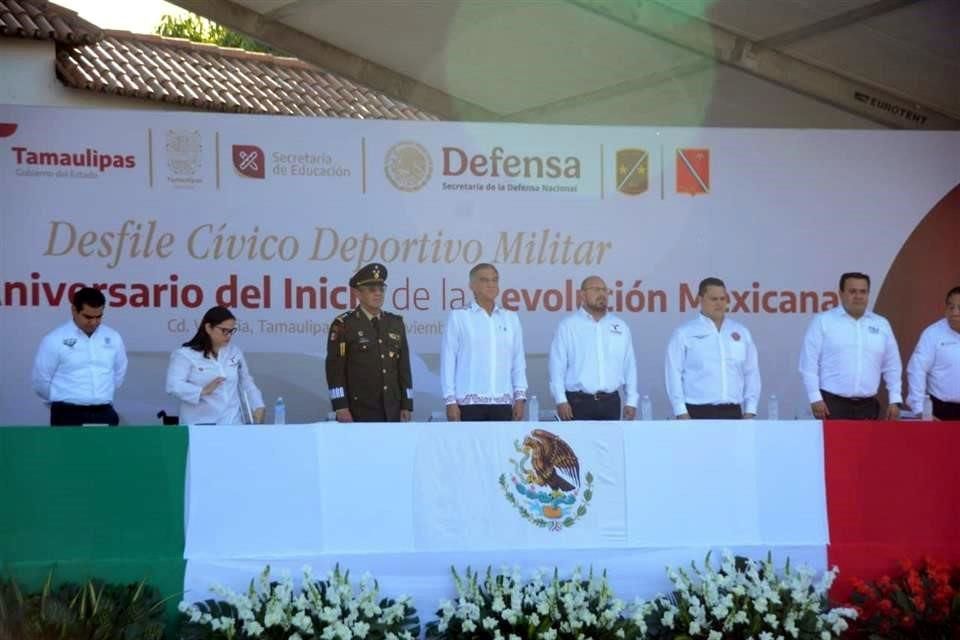 El Gobernador de Tamaulipas, Américo Villarreal, presidió el desfile cívico militar del 114 Aniversario del inicio de la Revolución Mexicana, en la capital del Estado.