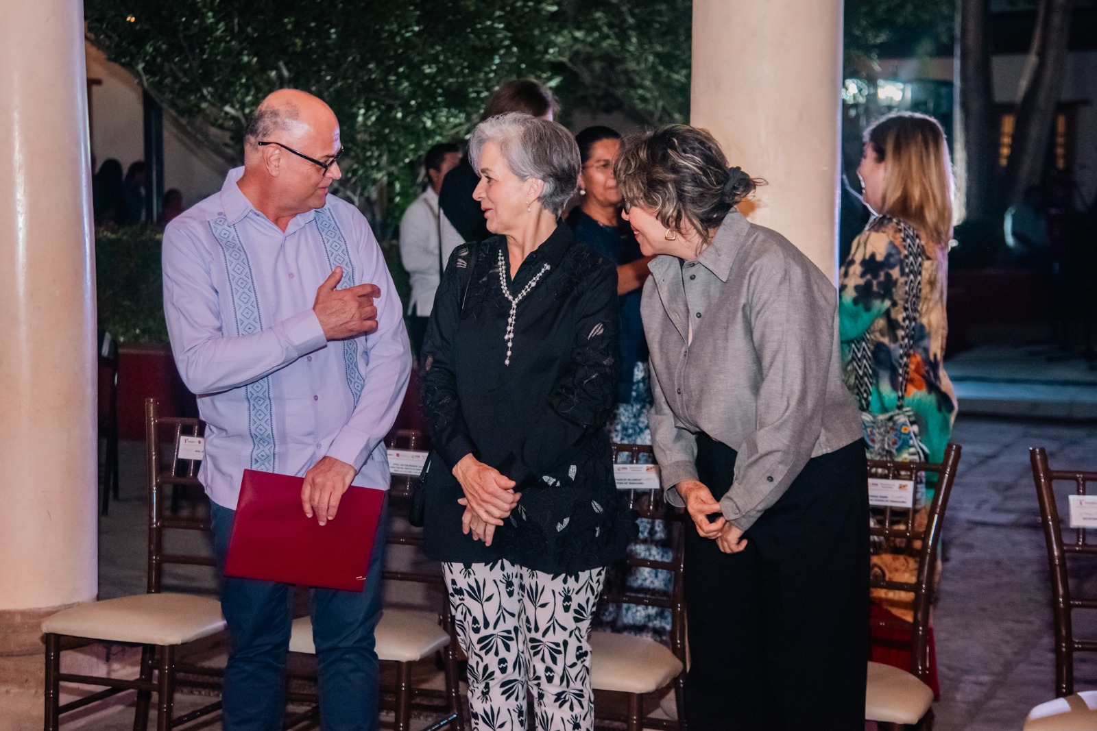 La exposición contó con la presencia de la doctora María de Villarreal, presidenta del DIF Tamaulipas; Silvia Casas González, secretaria de Bienestar Social Tamaulipas; Fernanda Reyes, hija del artista y la cantante Viola Trigo, quien realizó un entrañable conversatorio sobre el notable pintor, gracias a la amistad que sostuvieron.