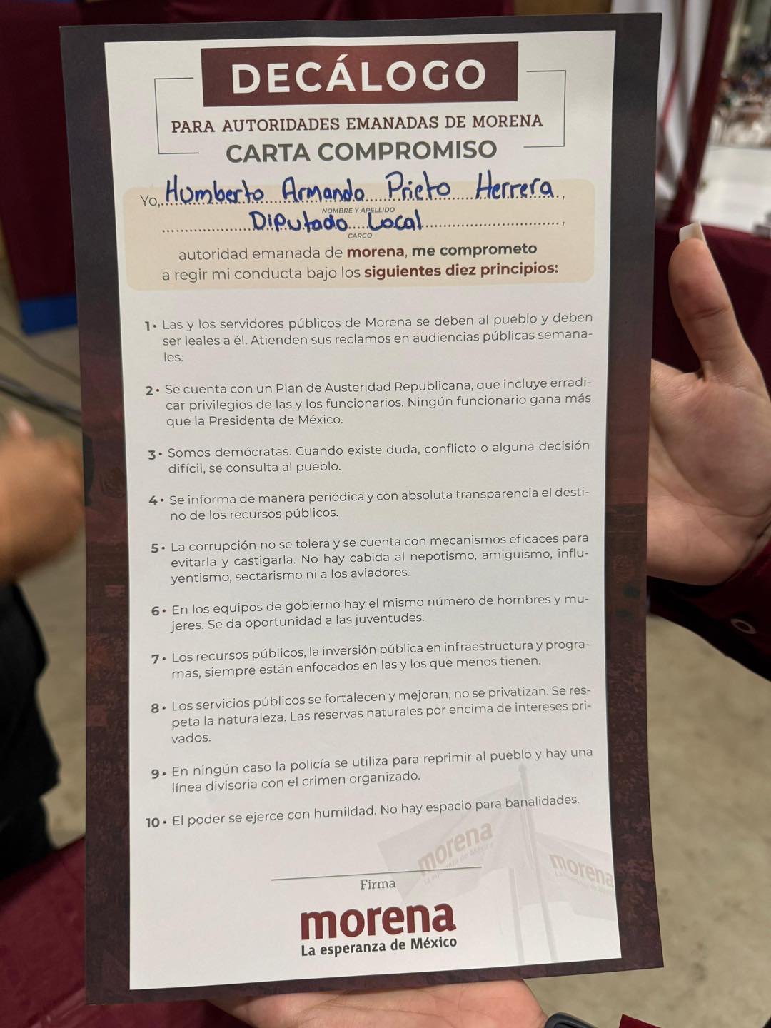 Junto a Luisa María Alcalde, presidenta nacional de MORENA, Carolina Rangel Gracida, secretaria general del Comité Ejecutivo Nacional, Andrés Manuel López Beltrán, secretario de organizaciones, Aroon Enríquez, director de las juventudes, liderazgos estatales, legisladores e invitados, Humberto Prieto Herrera reafirmó su compromiso con el Movimiento de Regeneración Nacional MORENA.