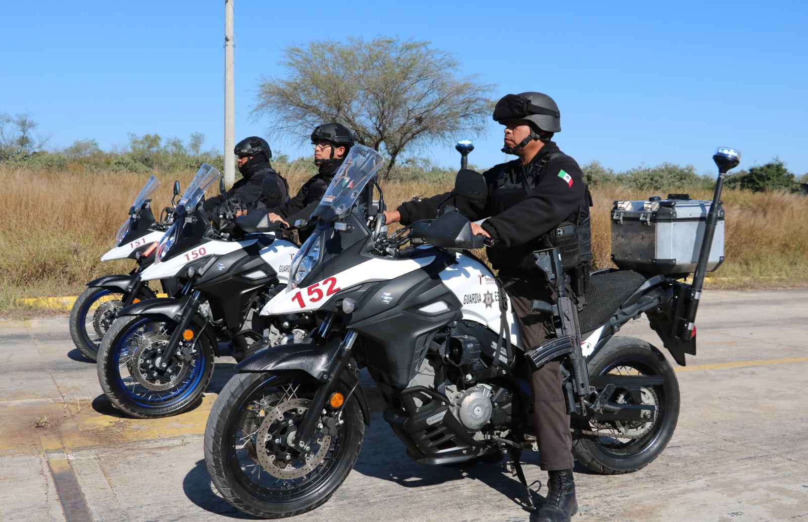 La Guardia Estatal cuenta con un grupo motorizado denominado “Linces” cuya principal función es la proximidad, brindar seguridad y vigilancia en espacios de difícil acceso para unidades motorizadas de mayor tamaño.