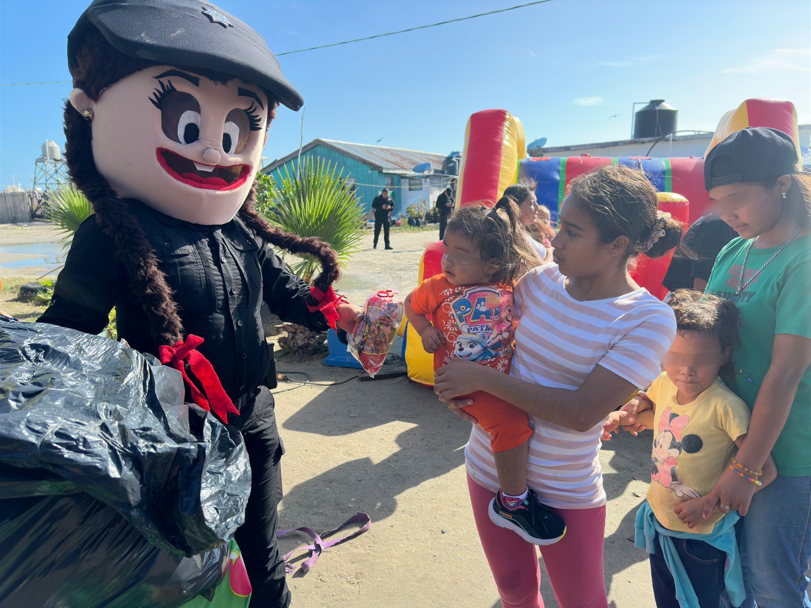 Como parte de las acciones de proximidad social, personal de la Guardia Estatal en el municipio de Matamoros realizó una convivencia navideña con cerca de 200 menores en el Puerto El Mezquital, ubicado en esta ciudad fronteriza.