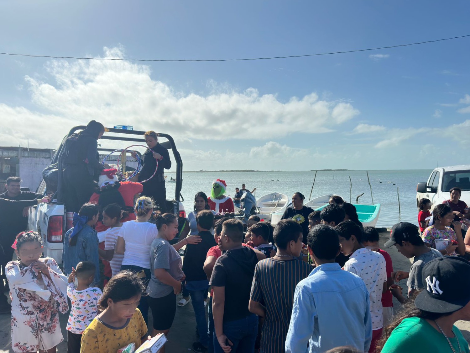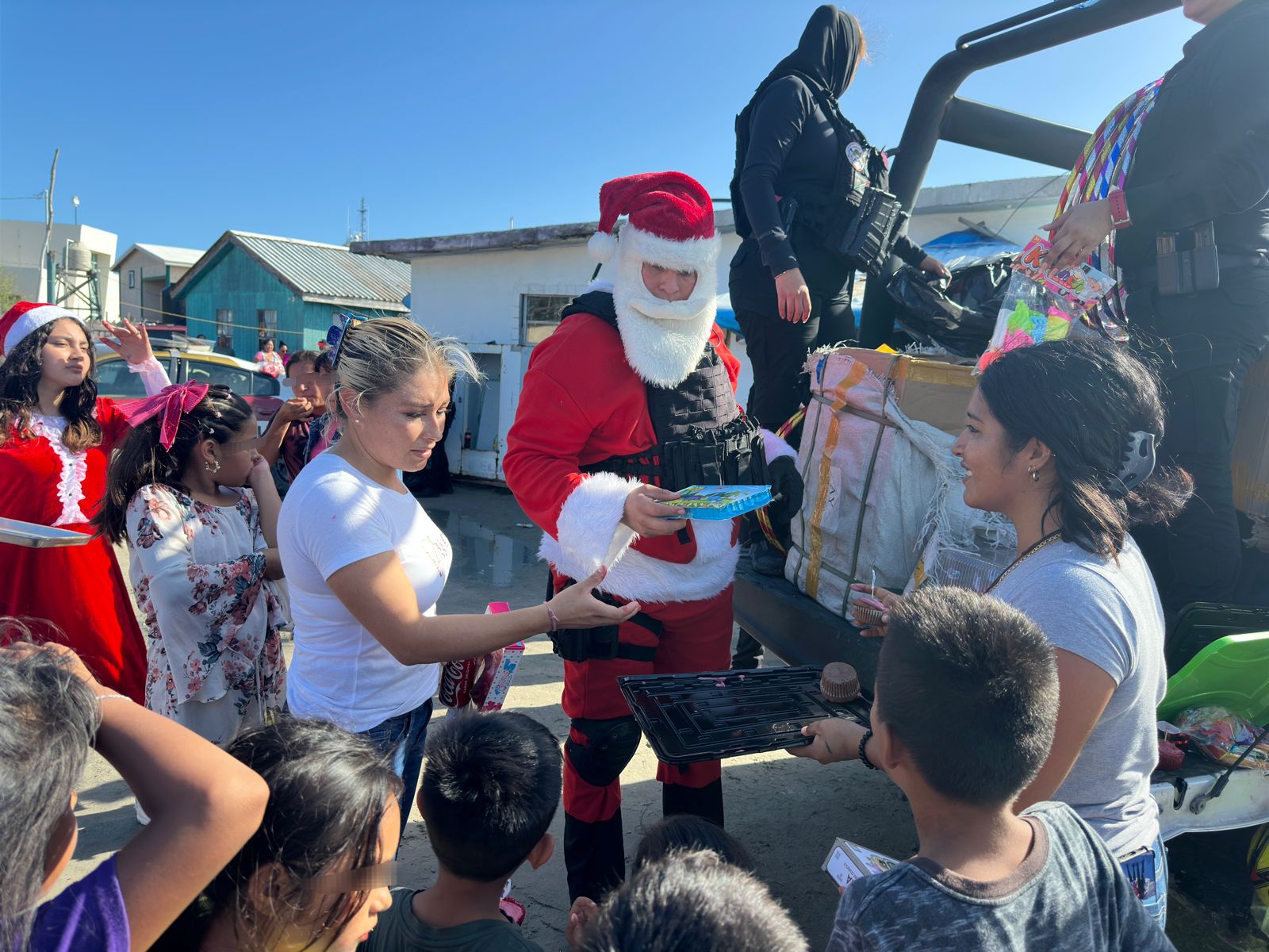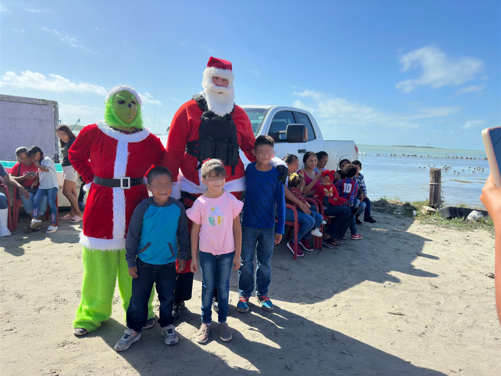 Como parte de las acciones de proximidad social, personal de la Guardia Estatal en el municipio de Matamoros realizó una convivencia navideña con cerca de 200 menores en el Puerto El Mezquital, ubicado en esta ciudad fronteriza.