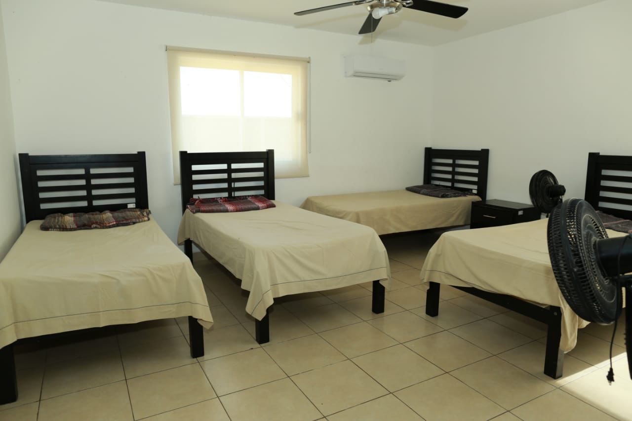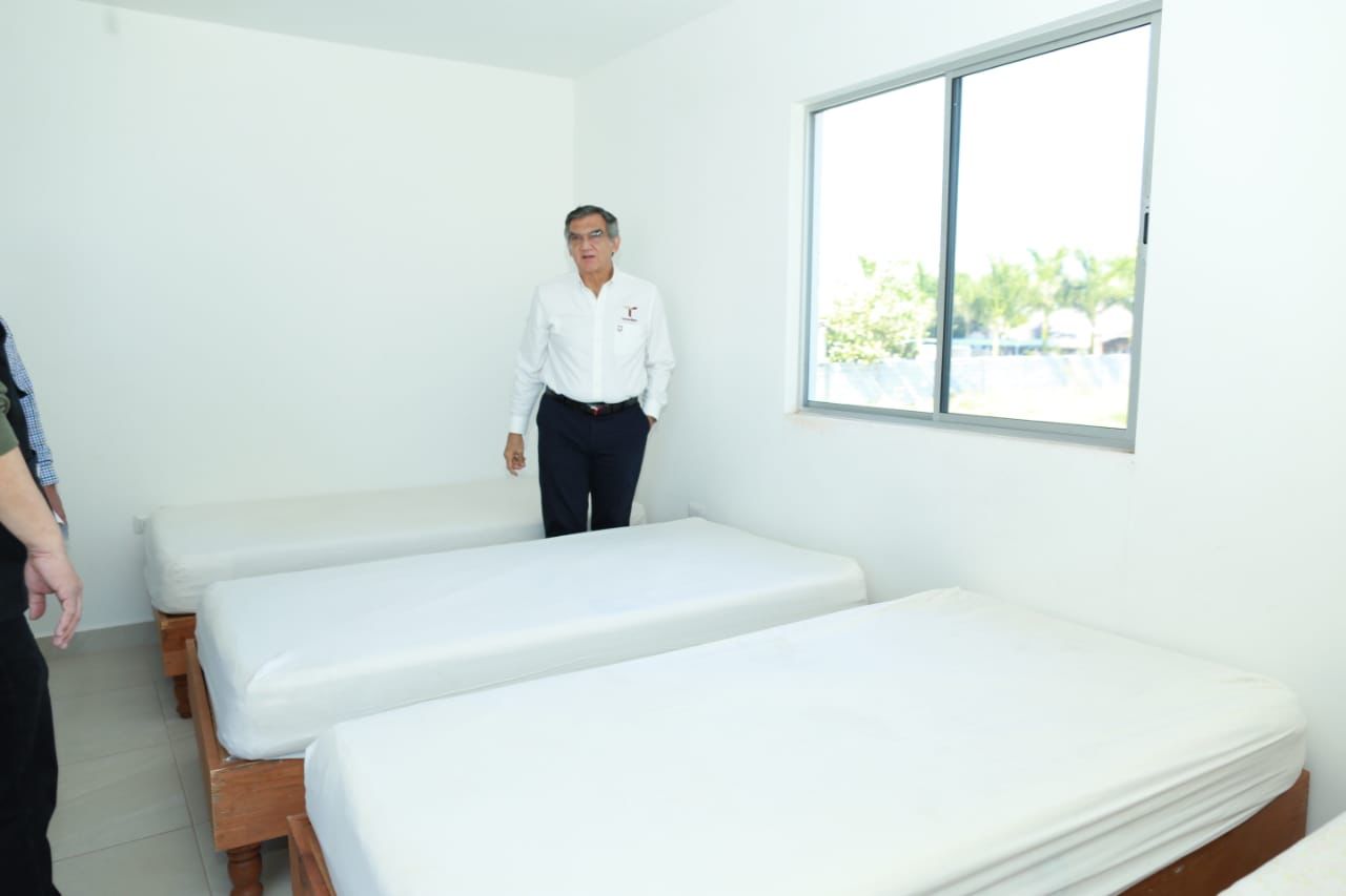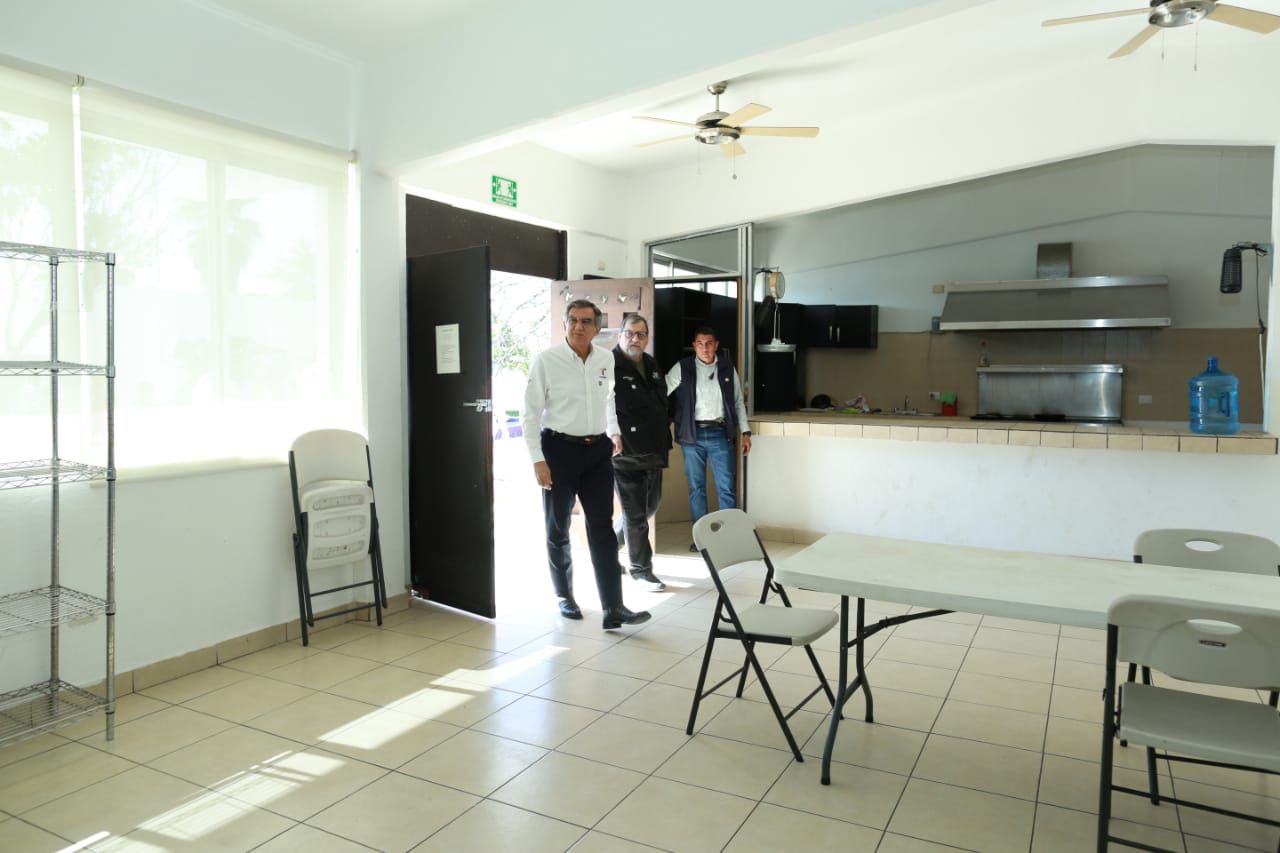 El gobernador también supervisó las áreas de cocina, enfermería, atención médica, lavandería, bodega, el salón de enseñanza y el espacio deportivo que incluye una pista de tartán, y consideró que este Centro del DIF Tamaulipas, el cual se encuentra totalmente bardeado y con iluminación suficiente, cuenta con la capacidad operativa y reúne las condiciones para brindar un trato digno y humanitario a quienes lo requieran ante una probable deportación masiva de Estados Unidos.