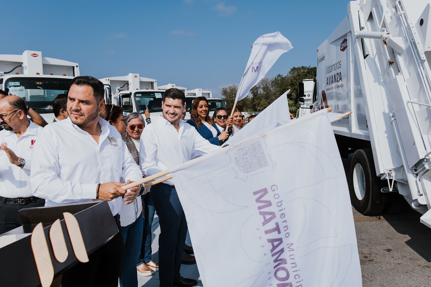 El alcalde Beto Granados encabezó esta tarde la entrega de 20 nuevos camiones compactadores en Matamoros a la Dirección de Limpieza Pública Municipal, fortaleciendo la capacidad de recolección en las 530 colonias de la ciudad. Con esta incorporación, la flota vehicular alcanza un total de 40 unidades en operación, distribuidas en 25 rutas en los tres turnos de servicio.