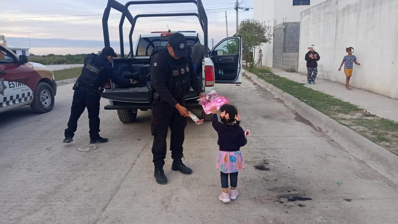 En el marco del Día de Reyes, personal de la Guardia Estatal regaló juguetes y dulces a niños de diversas colonias de la capital del estado.