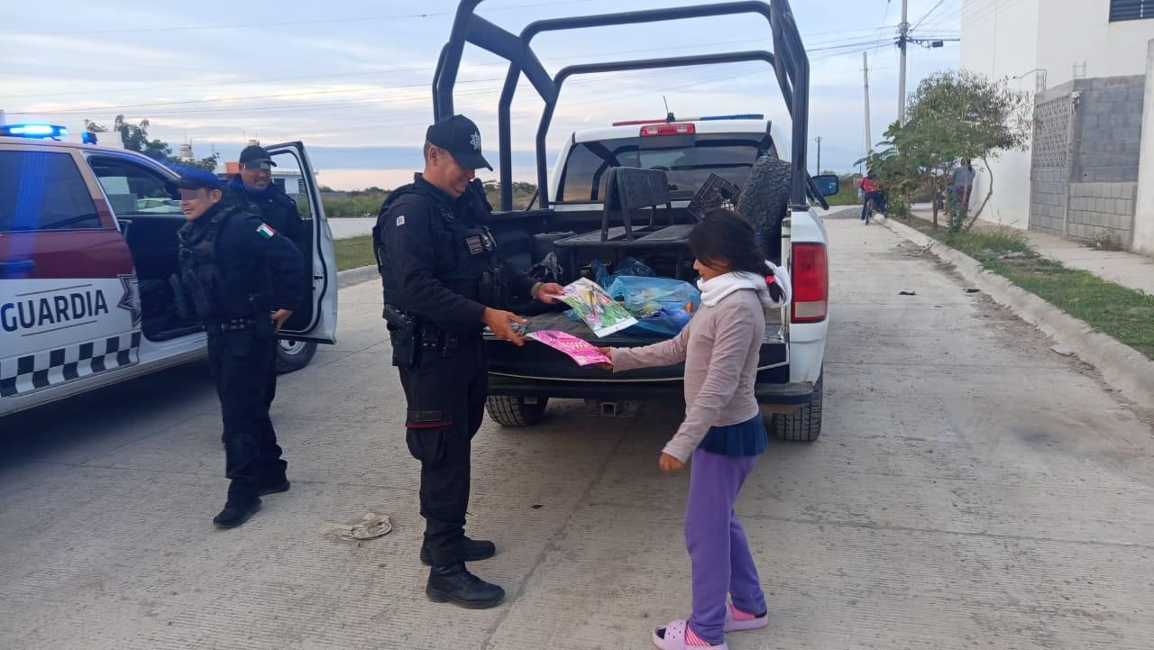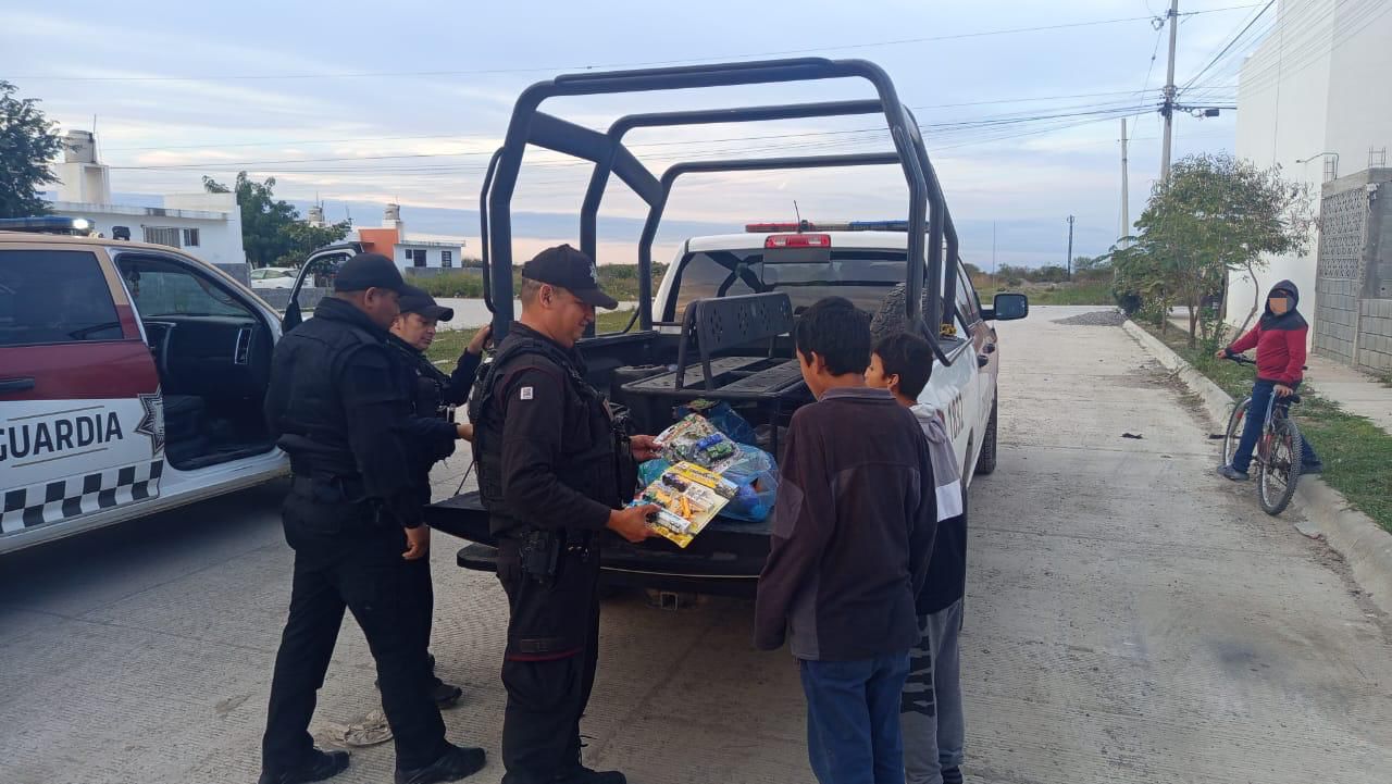 En el marco del Día de Reyes, personal de la Guardia Estatal regaló juguetes y dulces a niños de diversas colonias de la capital del estado.