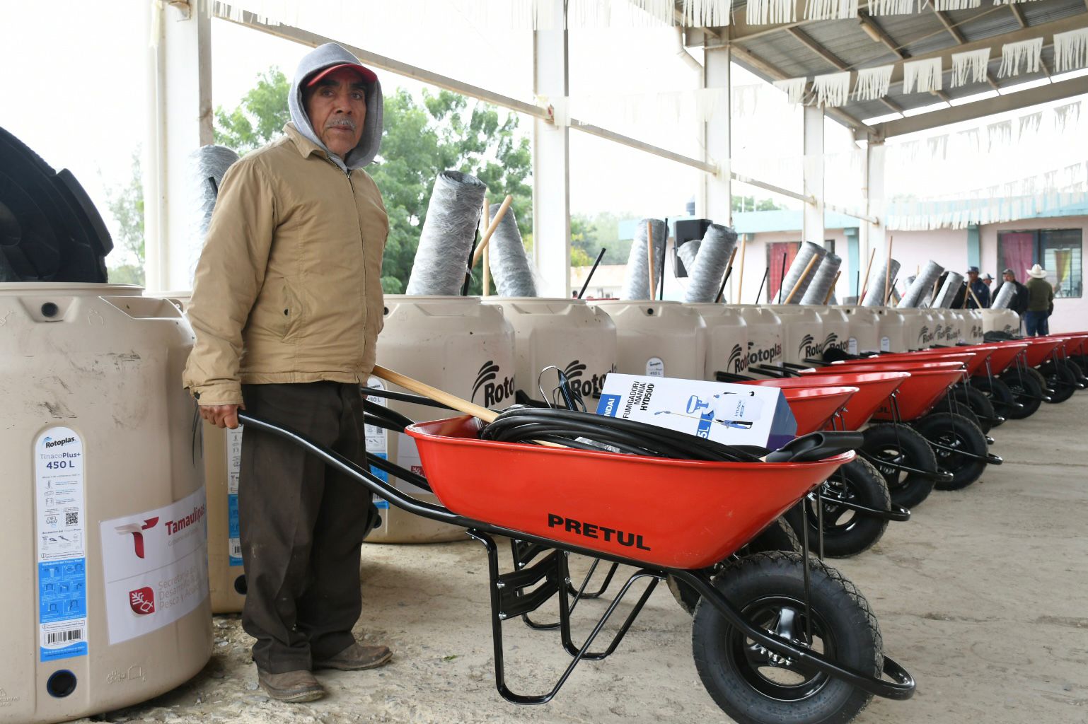 Al encabezar la entrega, Antonio Varela Flores, titular de la dependencia estatal destacó que un total de 70 familias de Congregación Caballeros y Mariposas y Mahuiras se beneficiaron con dichos paquetes que contiene: sistema de riego, tinaco, cintilla, semilla, bomba para fumigar manual, carretilla, pala, azadón, rollo de tela de malla para protección de huerto, 9 blocks y kit de agroquímicos y fertilizantes.