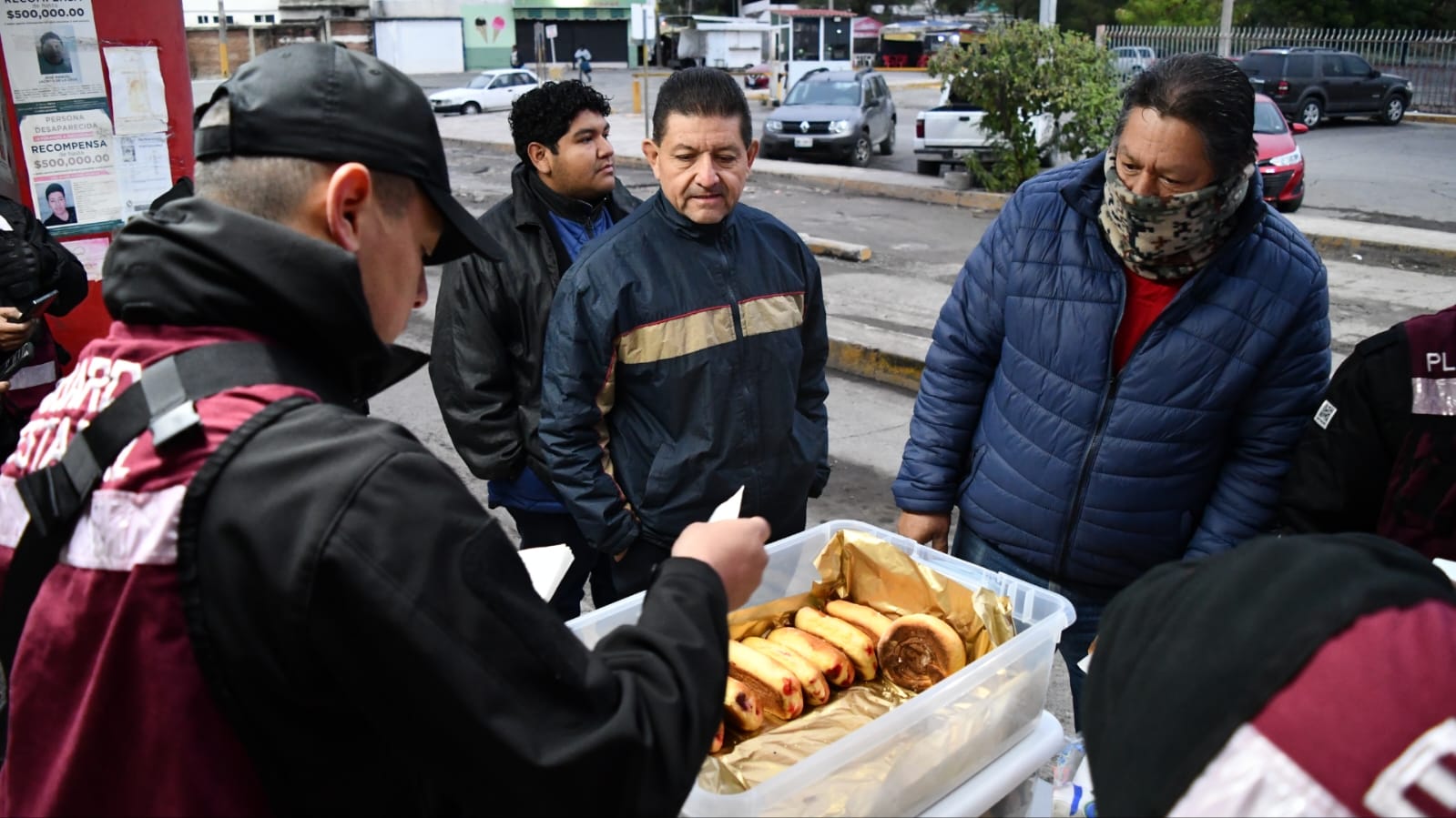 Con pan dulce y café, el personal de la Guardia Estatal de Género apoyó a la población a quienes reiteraron la disposición del 911 y 089 como medio oficial de contacto ante emergencias.