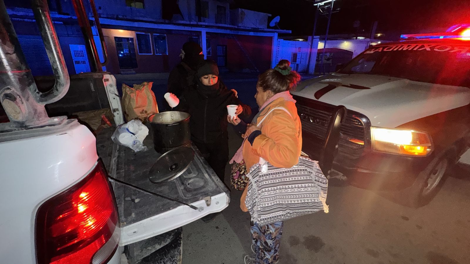 Además, el Grupo de Proximidad de la Guardia Estatal en Apoyo del Municipio de Reynosa repartió bebidas calientes y pan a personas en situación de calle en la zona centro y la colonia Aquiles Serdán.