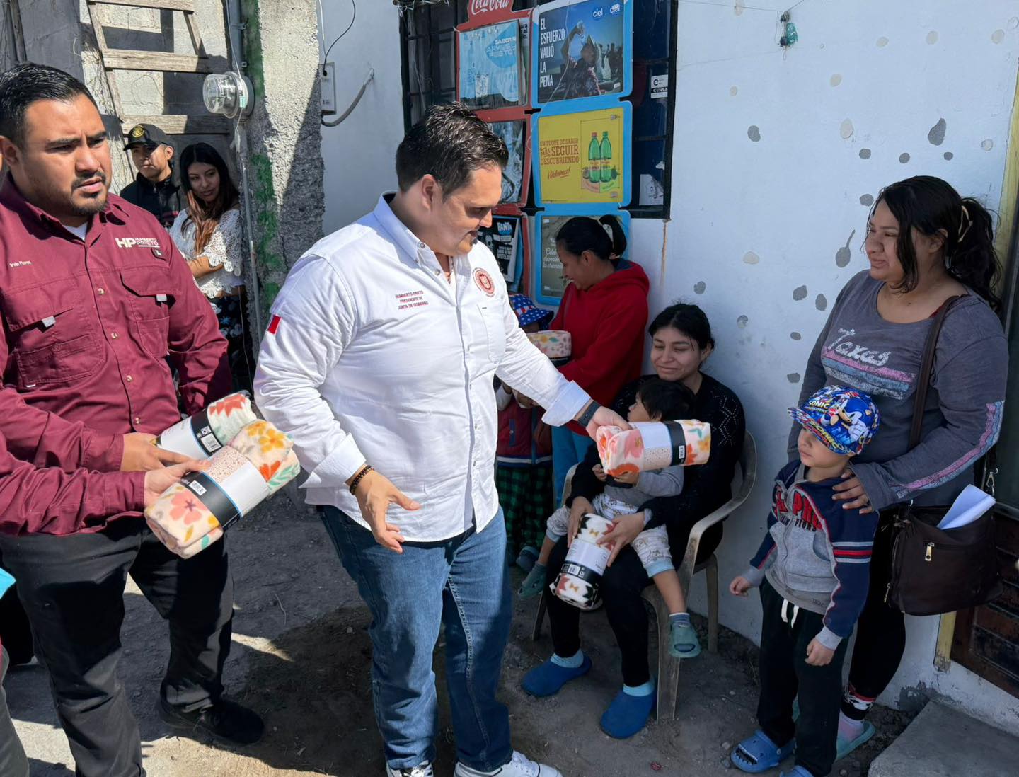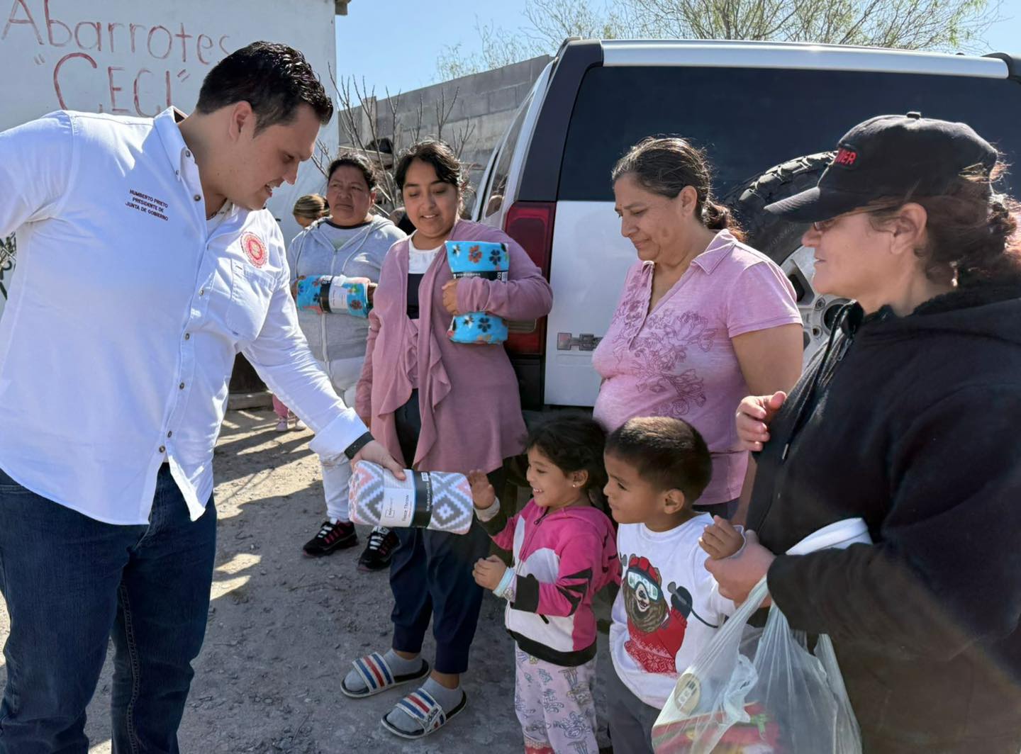 El Diputado Presidente de la Junta de Gobierno Humberto Prieto Herrera, durante la mañana de este sábado, realizó la entrega de cobijas a las familias en Reynosa, recorrido en el cual escuchó y platicó sobre las acciones que realiza en el Congreso del Estado y la ciudad.