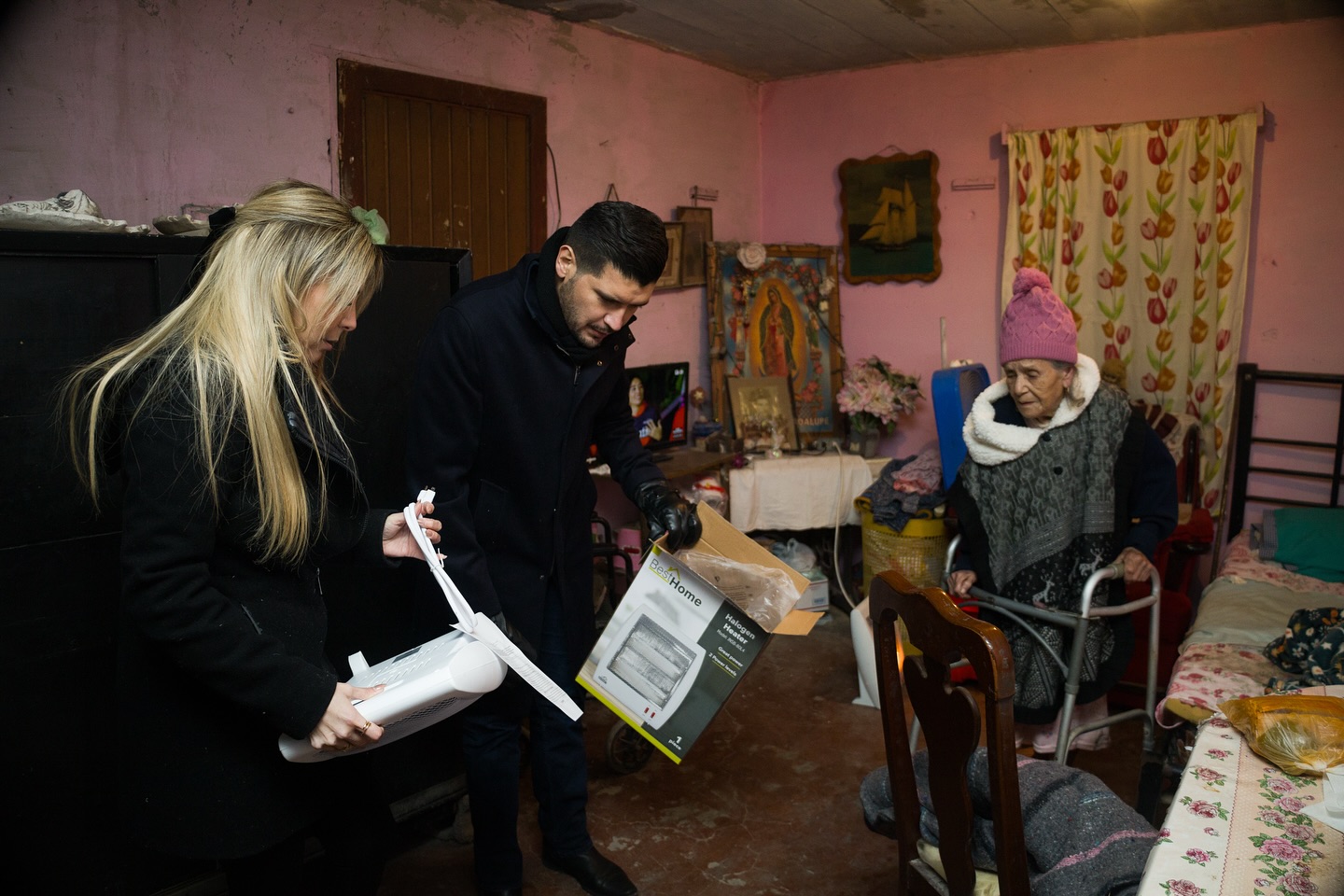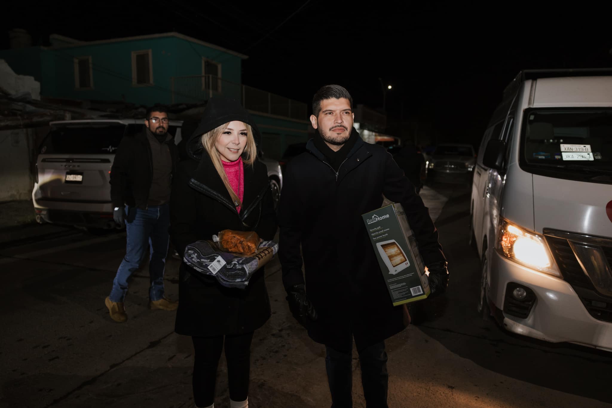 Ambos acudieron personalmente a diversos hogares para entregar calentadores y cobertores, brindando apoyo directo a quienes más lo necesitan durante esta temporada invernal.
