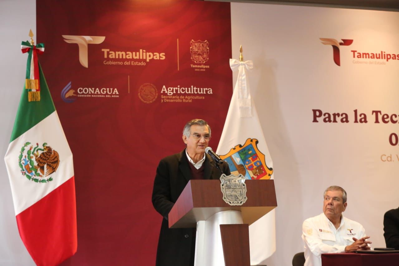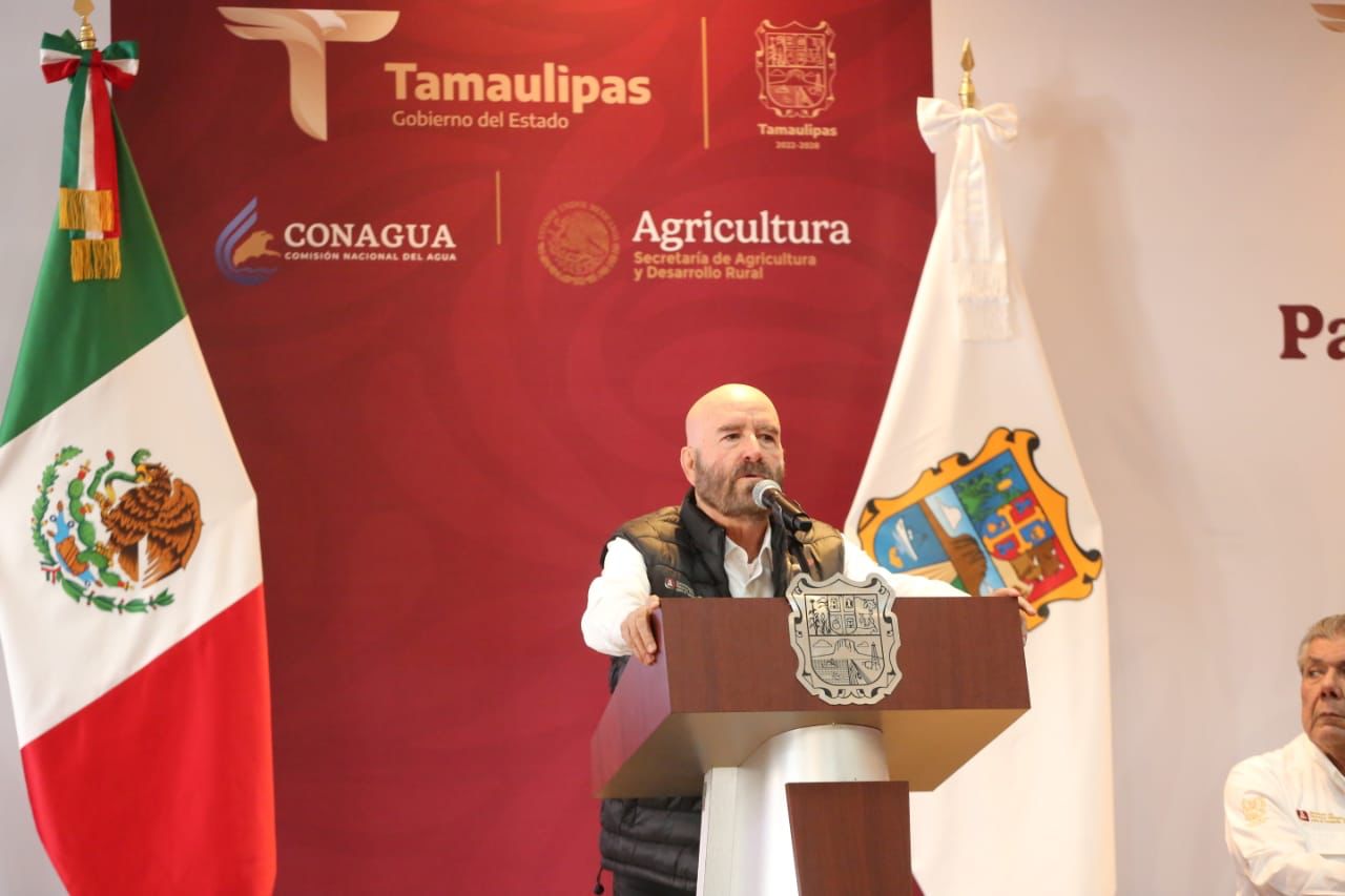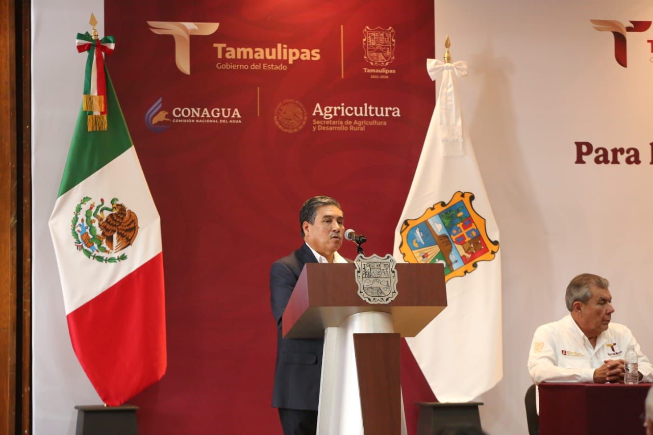 Ahora tenemos un gobierno humanista, un gobierno que vela por las personas a través de sus instituciones, con el que, tanto a través de la Secretaría de Agricultura como de la CONAGUA, hemos podido conjuntarnos nuevamente, para volver a armar estas piezas del rompecabezas que tenemos que reconstruir para poder volver a tener una presencia y vigencia desde el punto de vista agropecuario, a nivel nacional, manifestó el mandatario tamaulipeco.