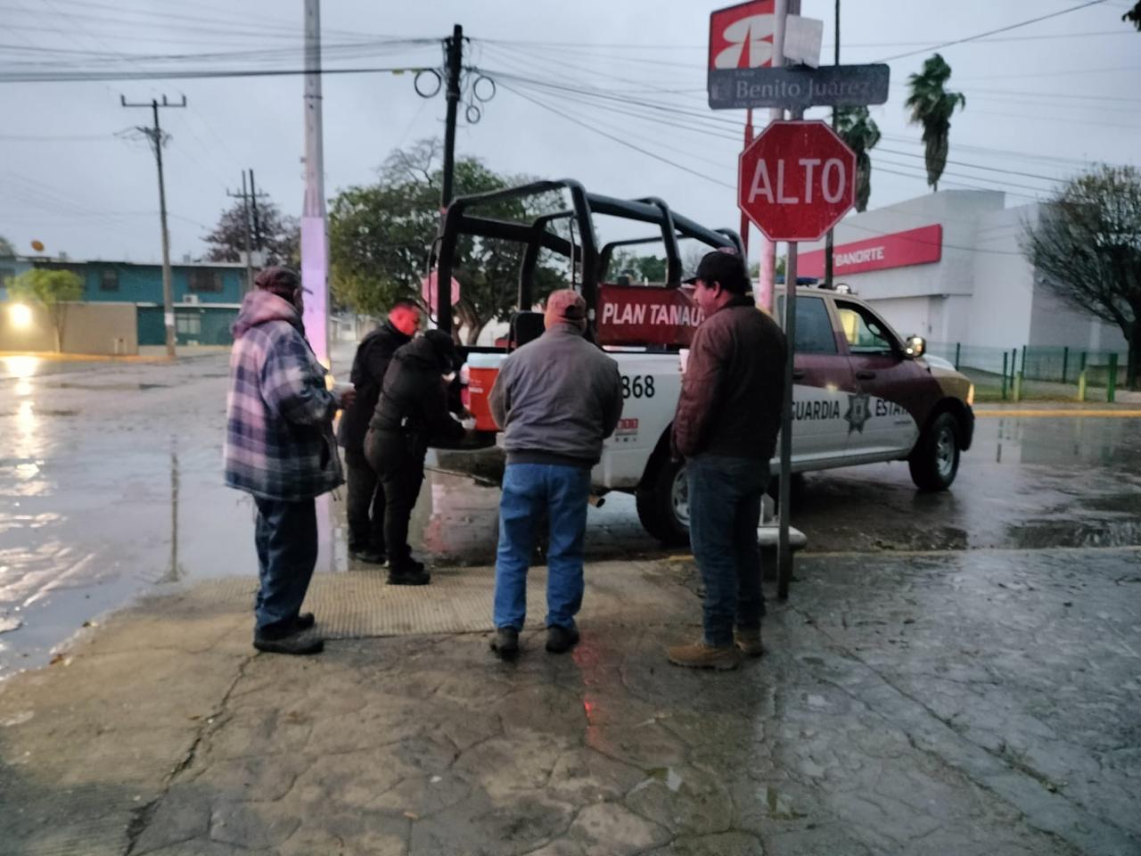 En el marco del Plan Tamaulipas, personal de la Guardia Estatal del municipio de Soto la Marina entregó chocolate caliente y pan a personas que se encontraban expuestas a las bajas temperaturas.