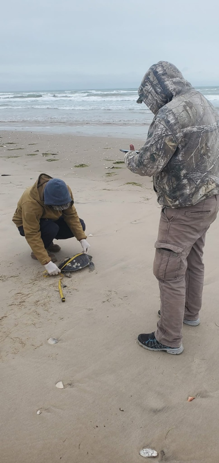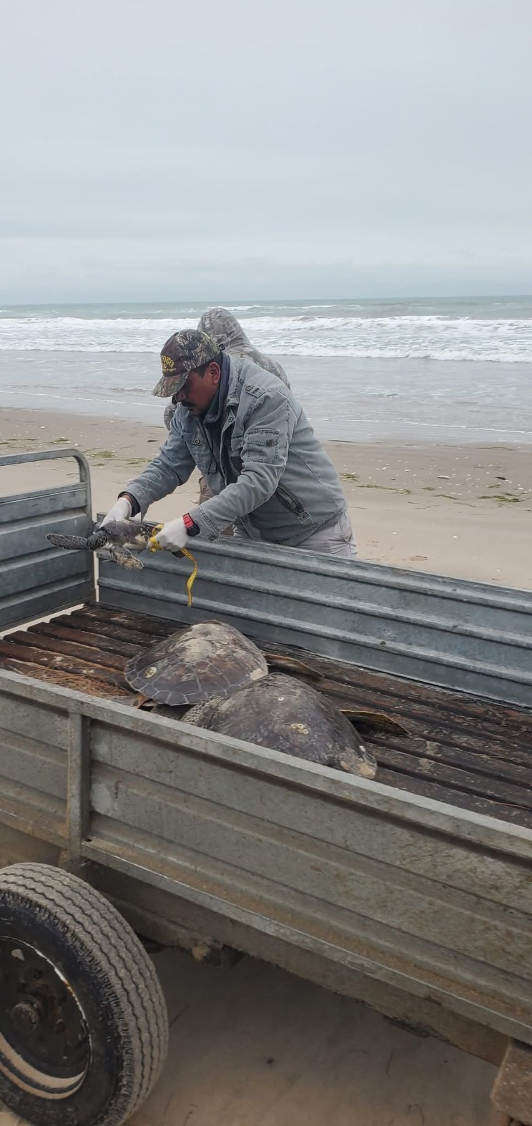 Personal de la Comisión de Parques y Biodiversidad de Tamaulipas (CPBT) rescató 40 ejemplares tortuga verde (Chelonia mydas), que estaban varadas por las secuelas de la onda gélida que afecta al estado.