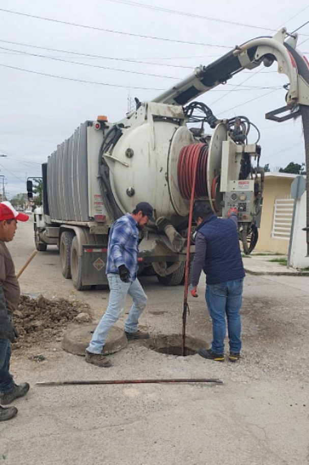 En la cabecera municipal de Soto la Marina, se realizaron trabajos de sondeo en 1,800 metros lineales de la red de drenaje, lo que permitió extraer 36 metros cúbicos de material residual y optimizar el funcionamiento del sistema de drenaje.