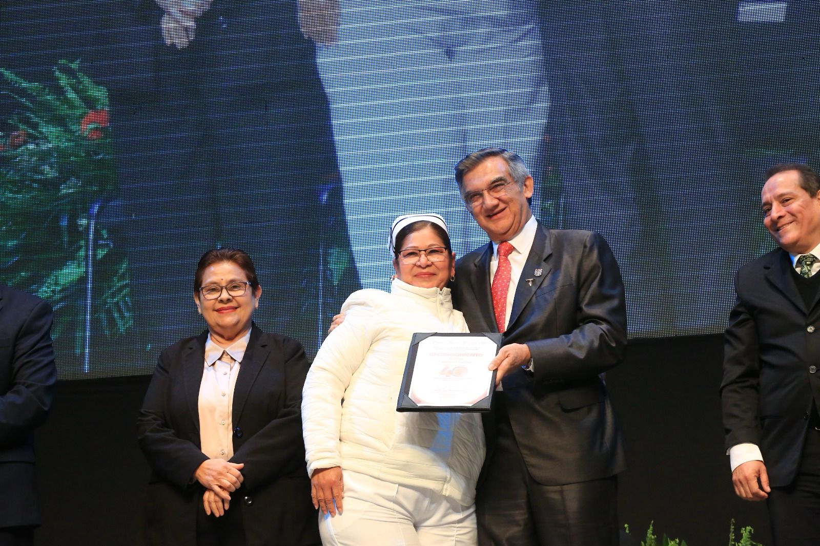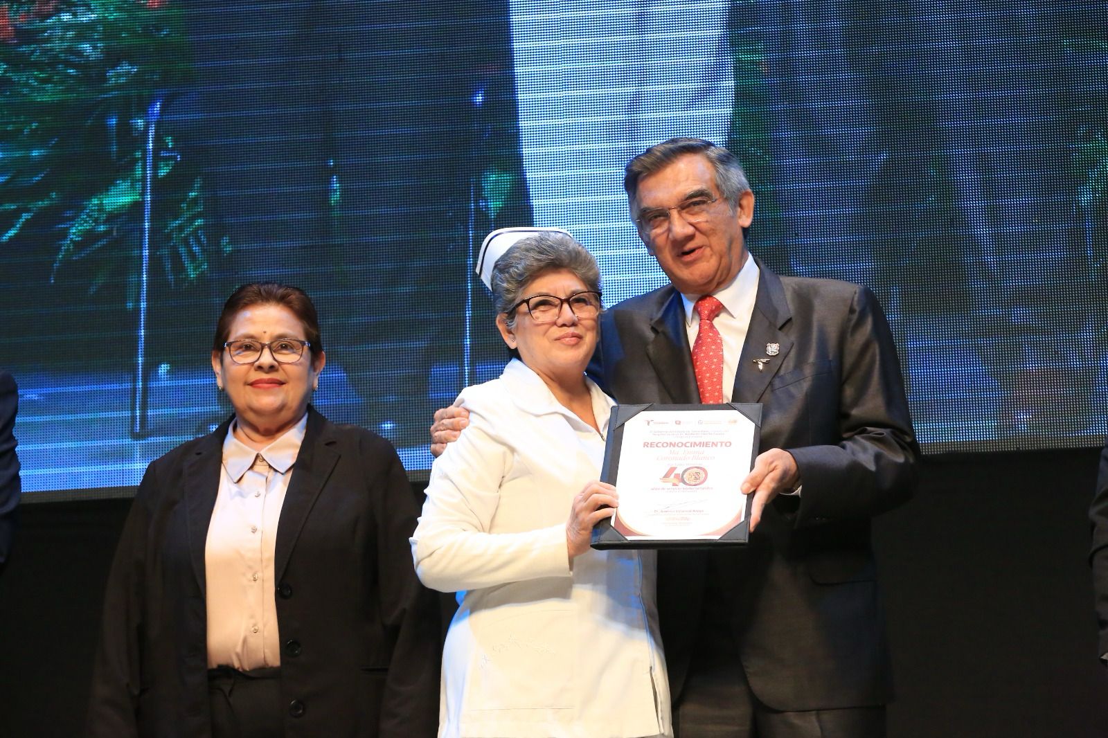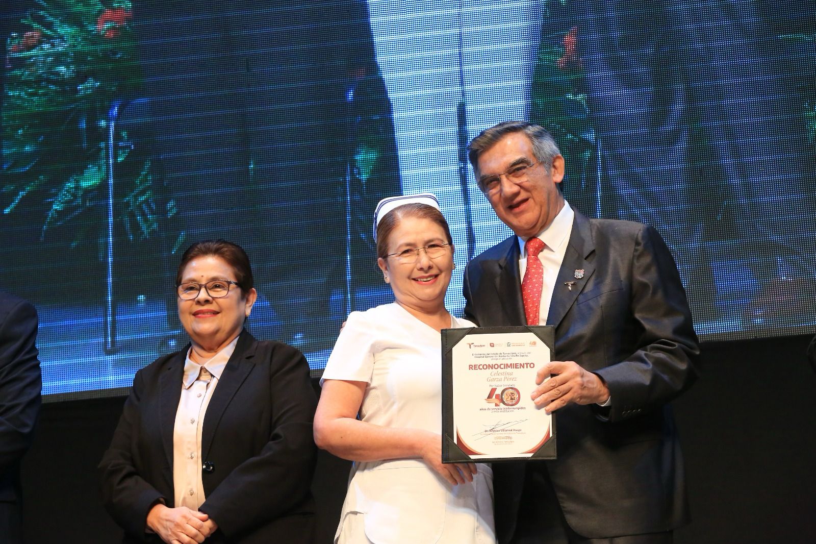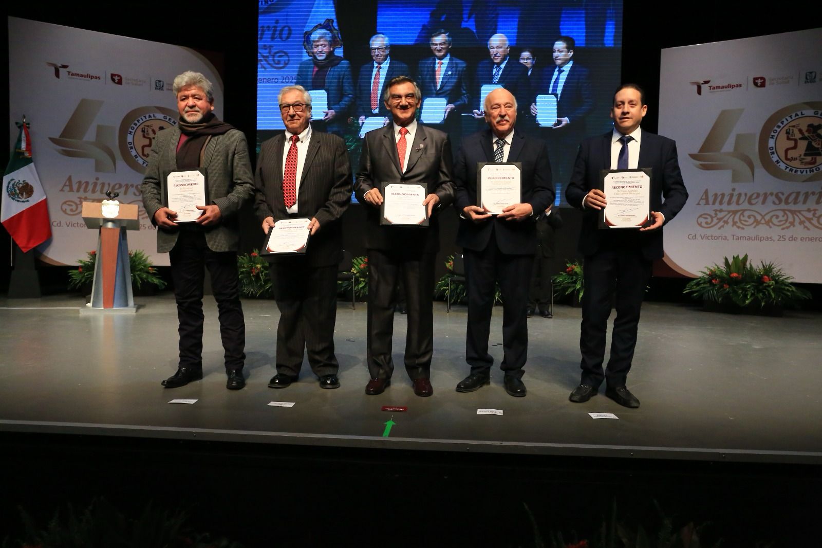 Al presidir una emotiva ceremonia este sábado en el teatro Amalia G. de Castillo Ledón, y tras entregar 50 reconocimientos a personal con 40 años de servicio y a cinco exdirectores, el gobernador aseguró que los mejores días de esta noble institución y, en general, de la salud pública de Tamaulipas y de México “están por venir”, dijo.