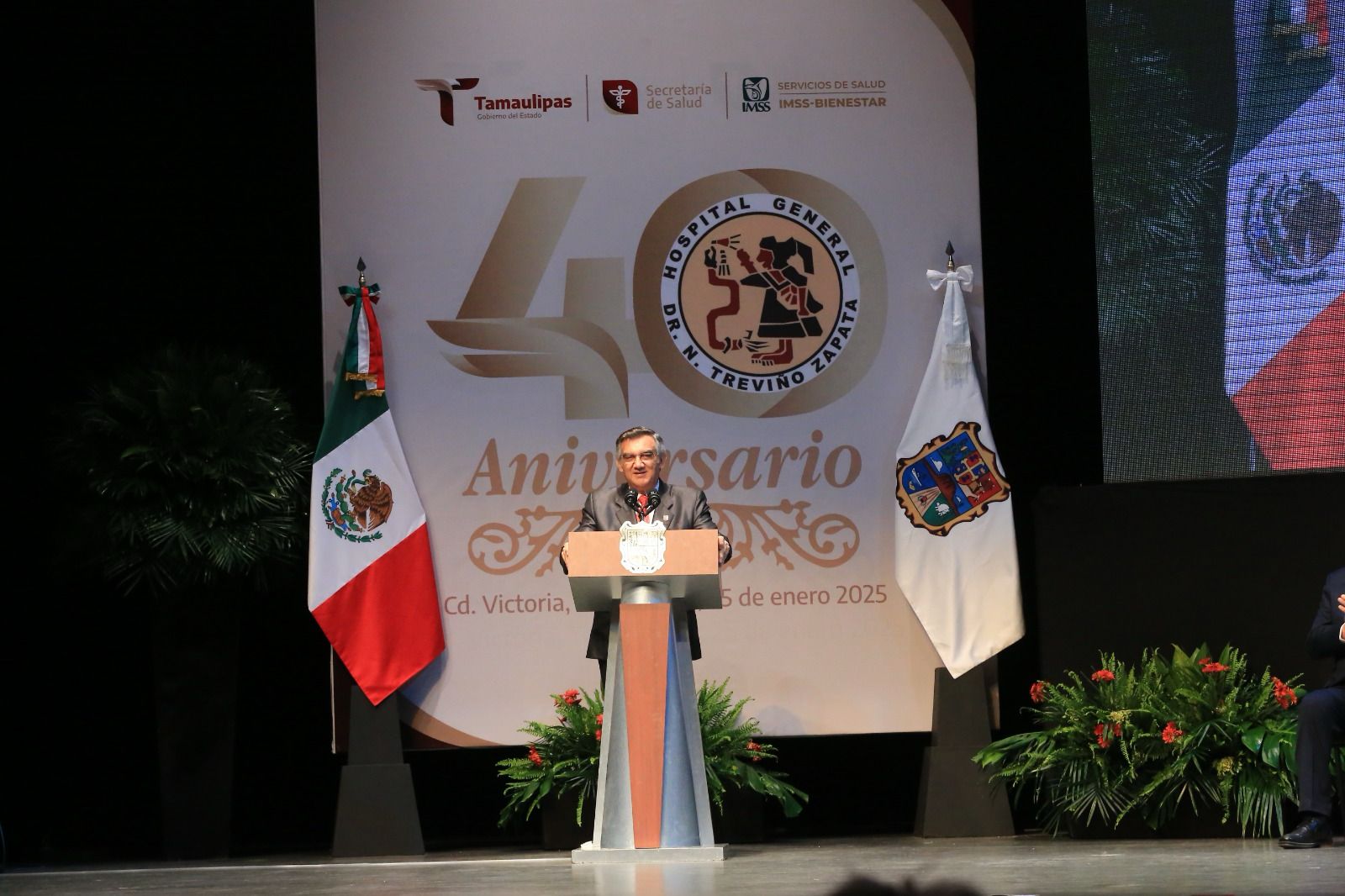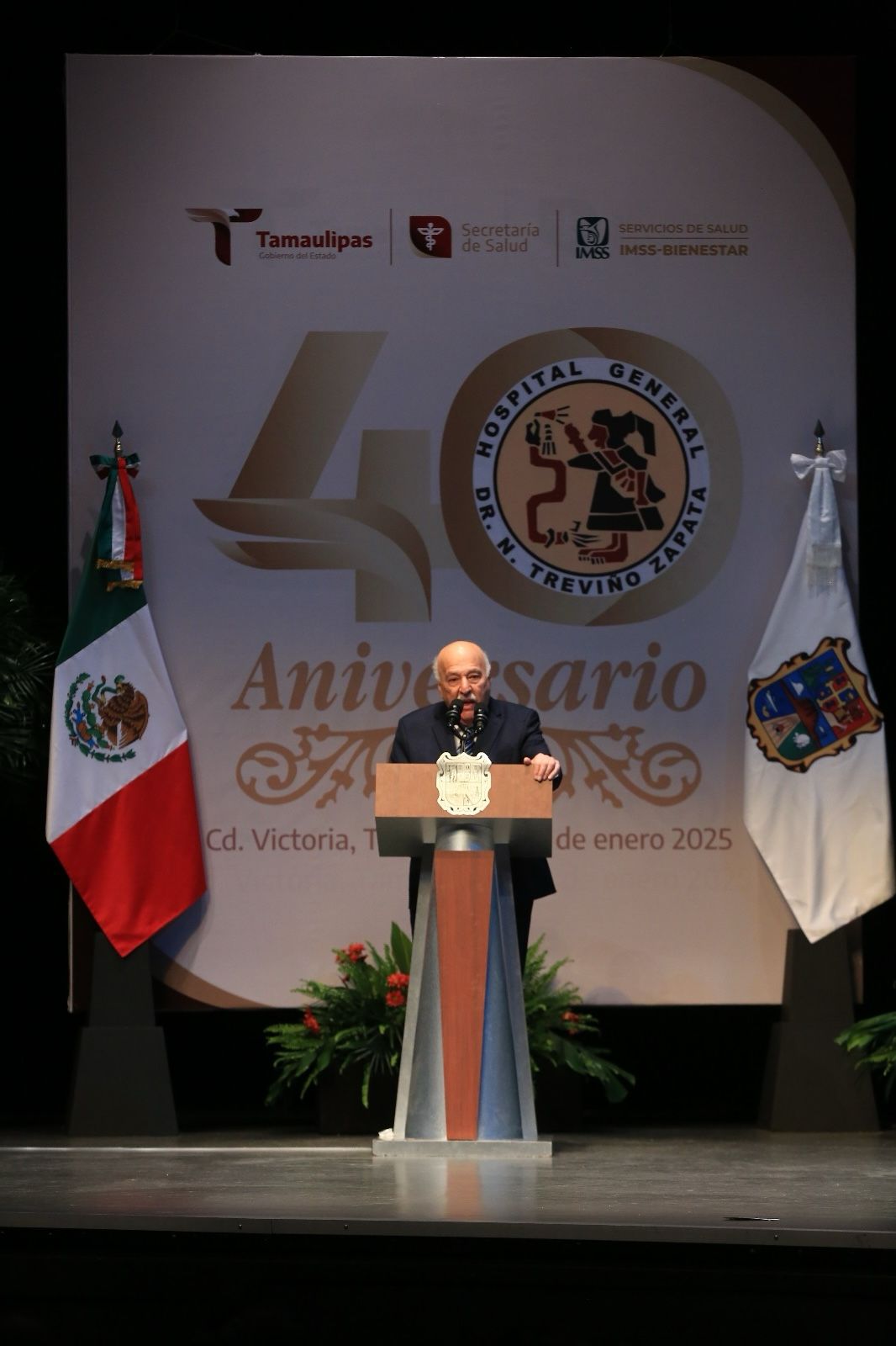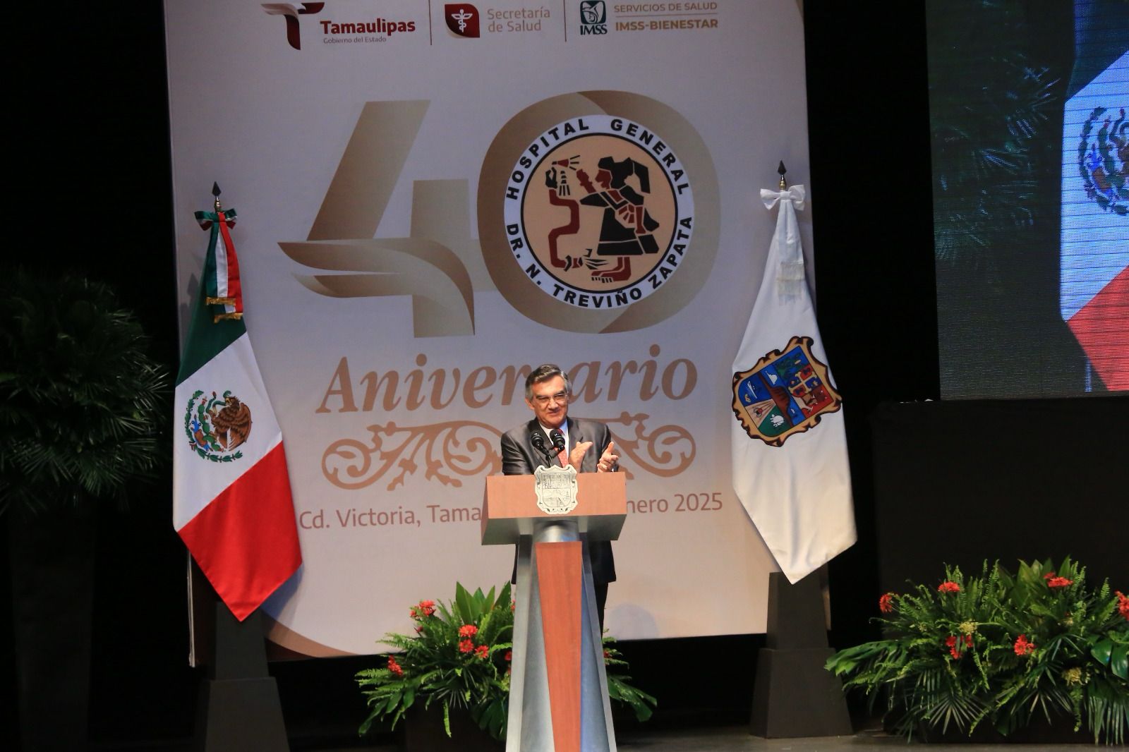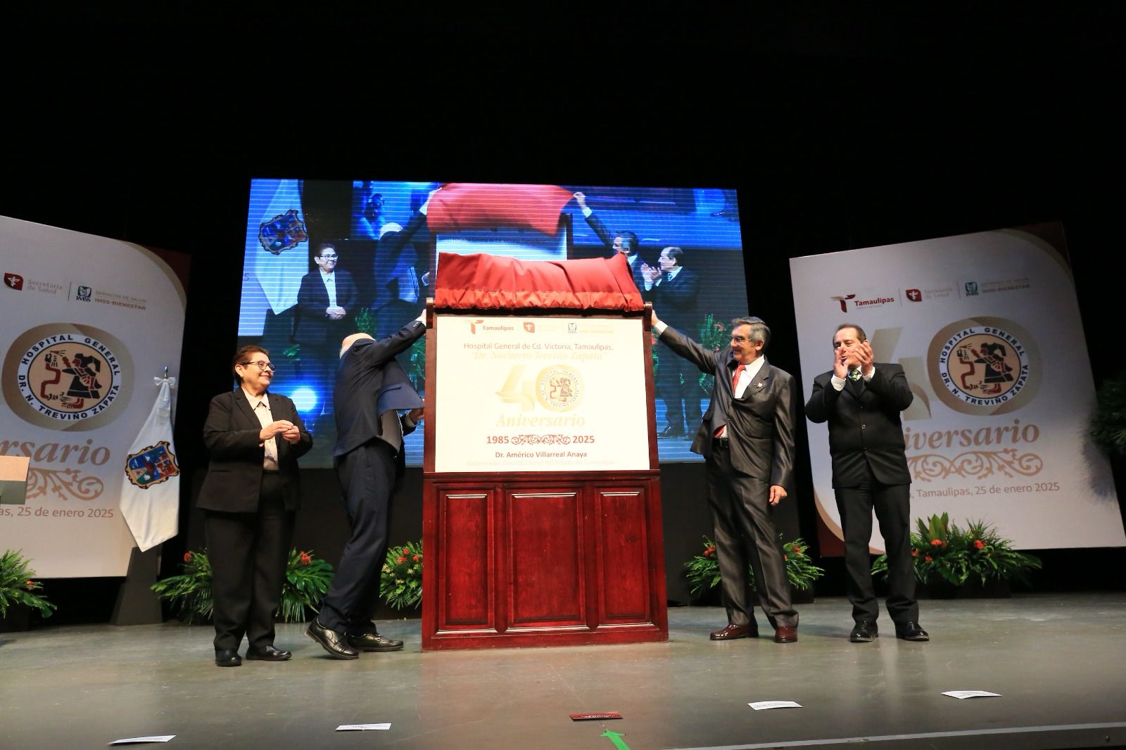 A 40 años de su fundación el Hospital General “Dr. Norberto Treviño Zapata”, hoy IMSS-Bienestar, se ha convertido en símbolo de calidad, esfuerzo y trabajo y es referencia para 400 mil tamaulipecas y tamaulipecos, sin seguridad social en la zona centro del estado, afirmó el gobernador Américo Villarreal Anaya.
