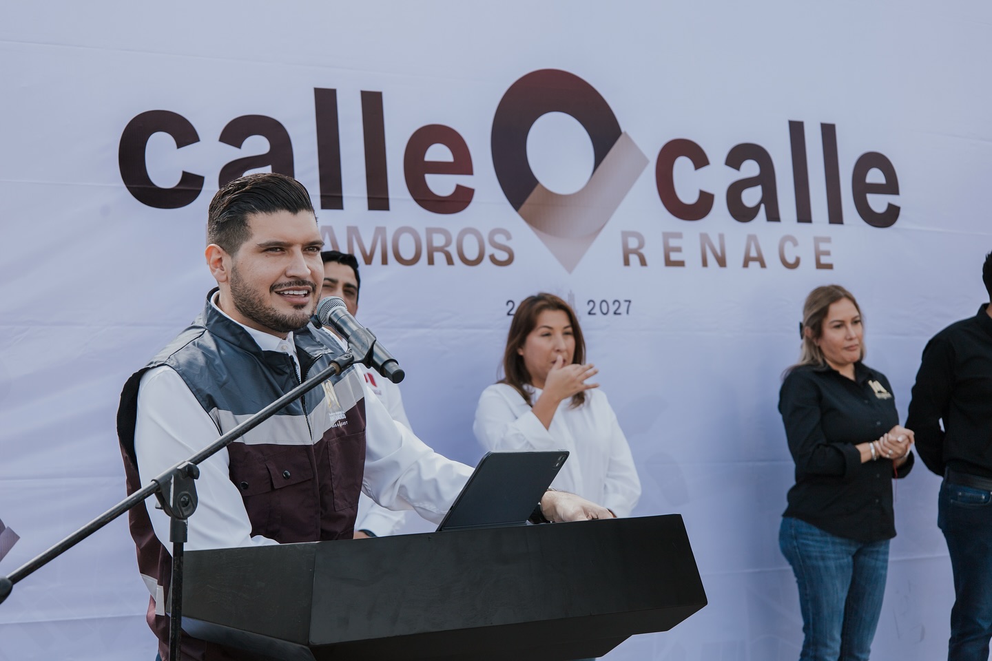 Durante el evento, el alcalde estuvo acompañado por funcionarios clave, como Alfonso Treviño Robles, secretario de Desarrollo Urbano y Ecología; Perla Guadalupe Medina, secretaria del Bienestar Social; César Reyes, secretario de Servicios Públicos, y la regidora Mireya González Zúñiga.