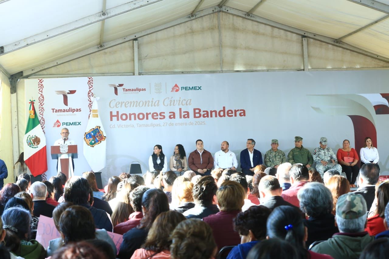 Durante la ceremonia cívica de honores, en el fraccionamiento Luis Quintero de esta capital, el gobernador afirmó que esta acción se suma a las tareas emprendidas por el Gobierno del Estado en Ciudad Victoria para mejorar los servicios públicos, la limpieza, el abastecimiento de agua y los servicios de transporte público.