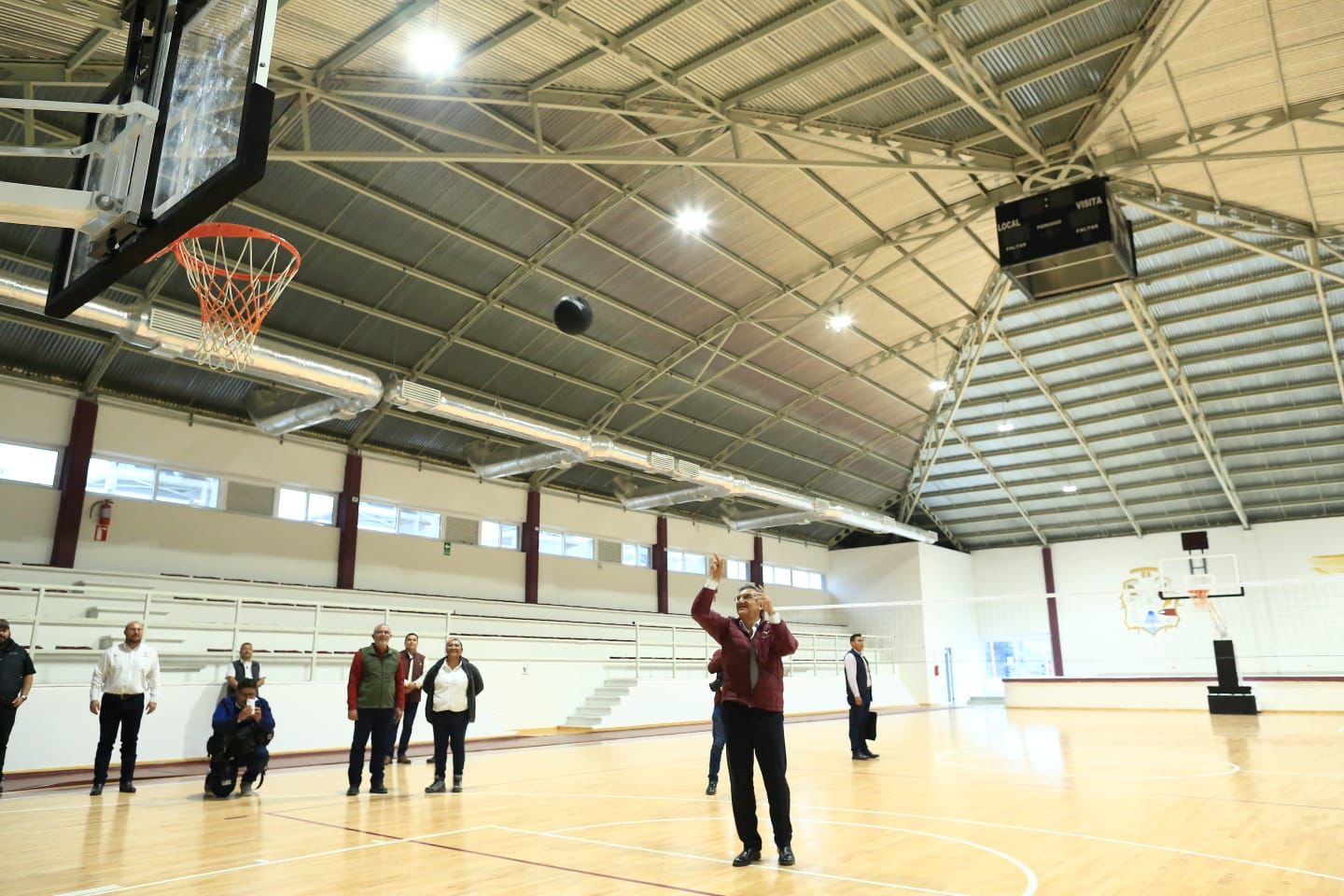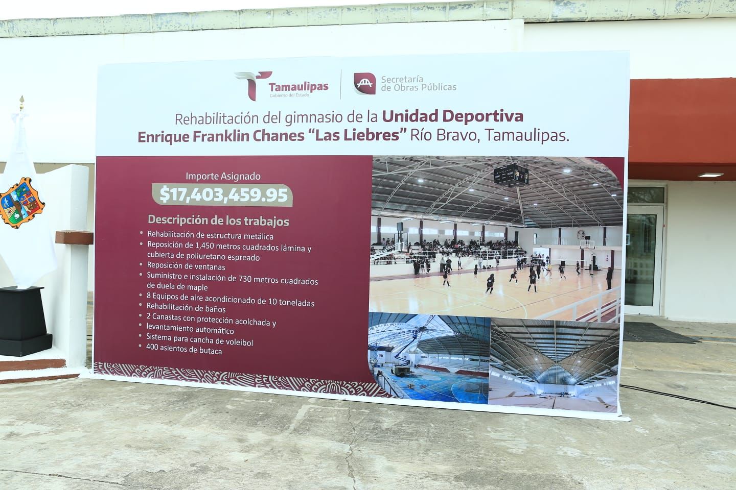 Respecto a los trabajos en el Gimnasio «Las Liebres«, Pedro Cepeda explicó que se realizó la rehabilitación de estructura metálica; reposición de 1,450 metros cuadrados de lámina y cubierta de poliuretano espreado; reposición de ventanas; suministro e instalación de 730 metros cuadrados de duela de maple; ocho equipos de aire acondicionado de 10 toneladas; rehabilitación de baños; dos canastas con protección acolchada y levantamiento automático; sistema para cancha de voleibol y 400 asientos de butaca, todo con un importe asignado de 17 millones 403 mil 459 pesos.