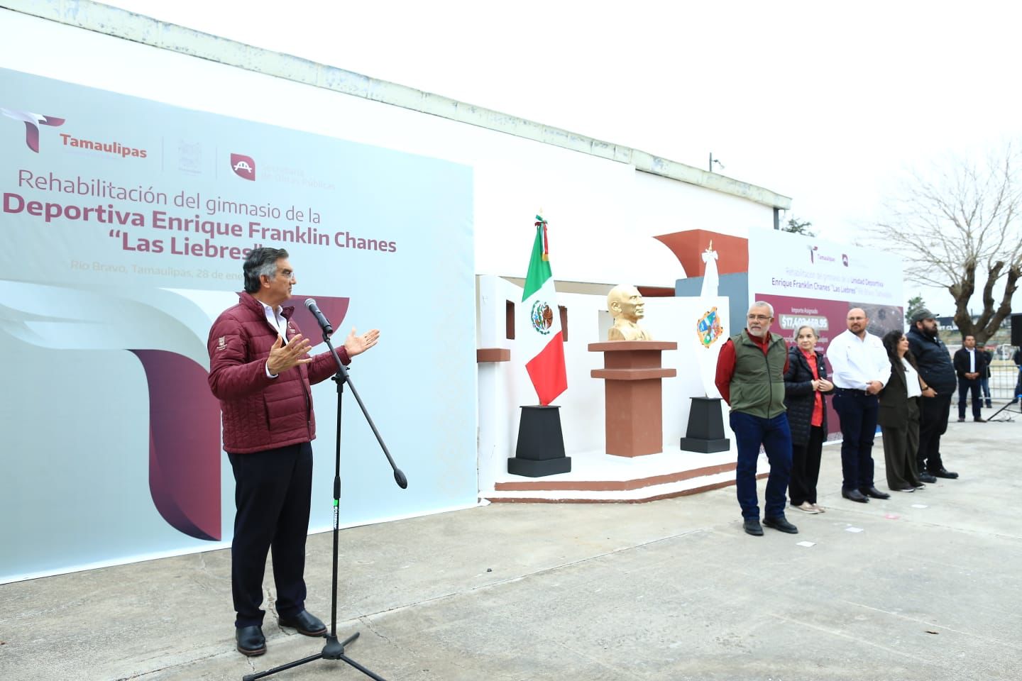Con una inversión de más de 17 millones de pesos y en respuesta a una petición de la comunidad deportista de Río Bravo, el gobernador Américo Villarreal Anaya entregó esta tarde la obra de rehabilitación del gimnasio de la Unidad Deportiva Enrique Franklin Chanes «Las Liebres«. Junto a la doctora María de Villarreal, presidenta del Sistema DIF Tamaulipas, el gobernador aseguró que la entrega de esta obra es un ejemplo del trabajo que realiza el Gobierno del Estado para recuperar la infraestructura deportiva que estuvo abandonada por otras administraciones.