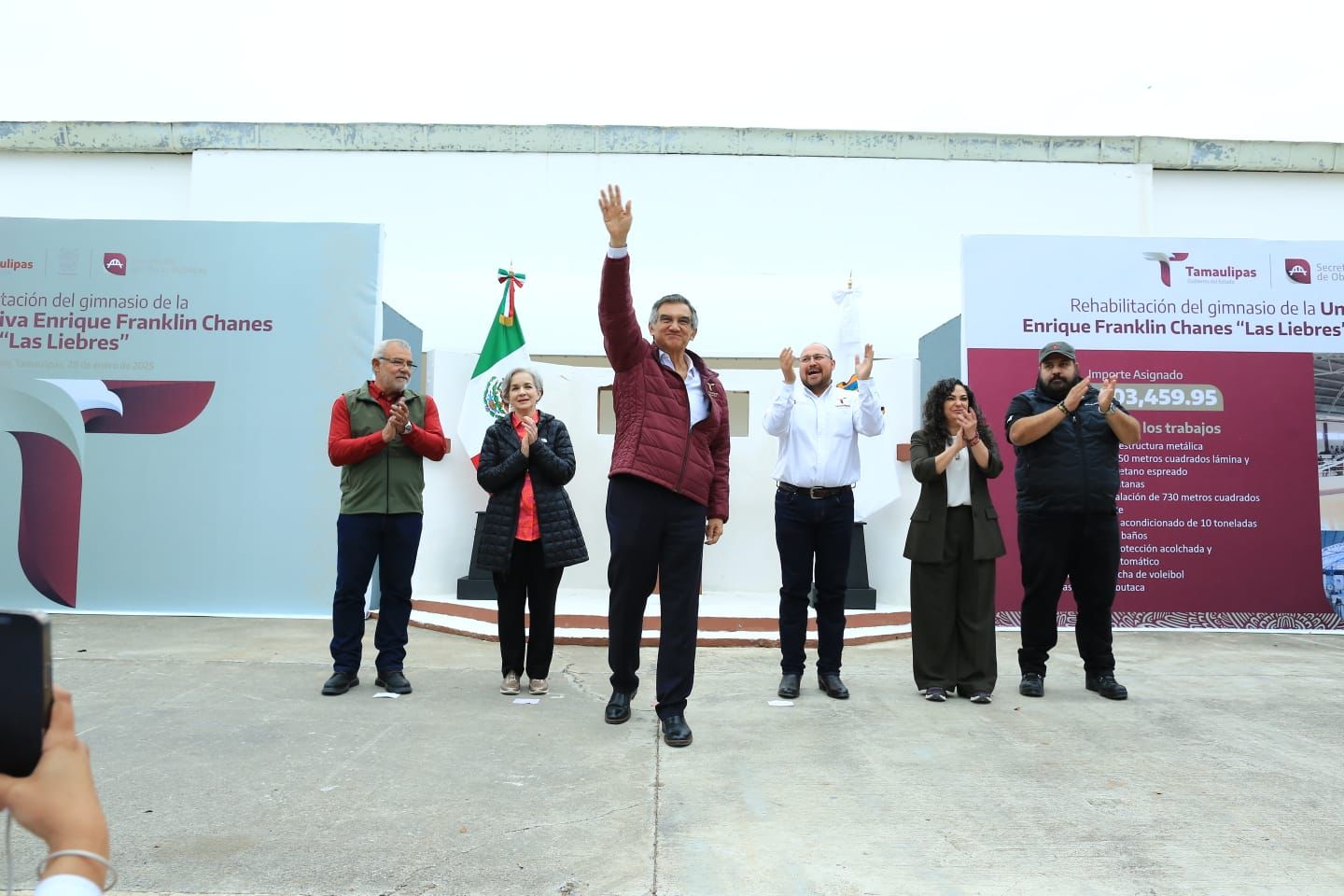 «Es un gusto estar aquí con ustedes, cumpliendo este compromiso y otros más que están pendientes por desarrollar; vamos a seguir progresando por el bien de Tamaulipas y el bien de México», agregó, al continuar con su gira de trabajo por los municipios fronterizos.