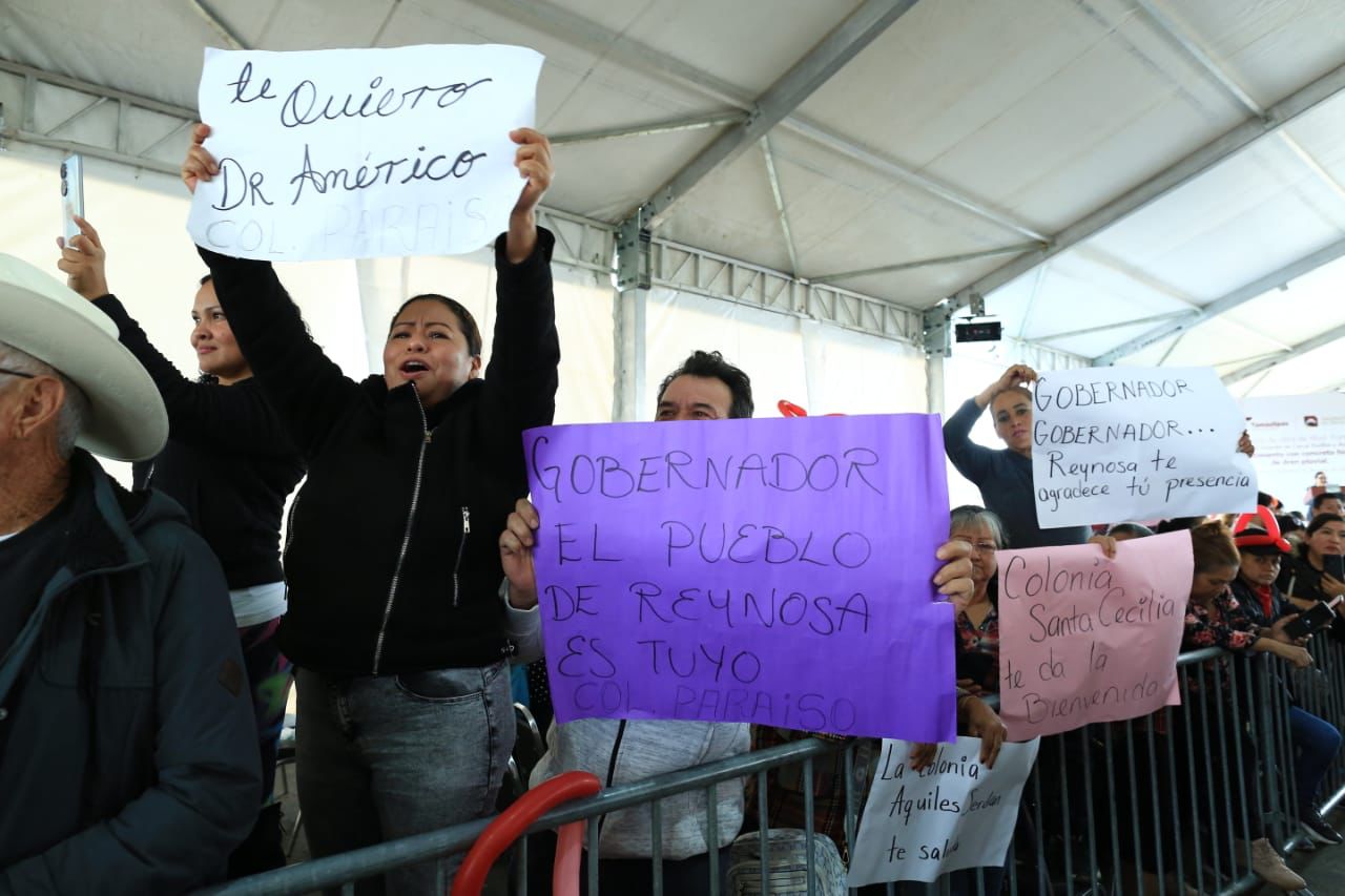 «Me da mucho gusto constatar este avance, como muchos otros, con esta inversión que ha hecho el Estado, pero también de obras que está haciendo el gobierno federal y el propio gobierno municipal, buscando lo que es el sentir real de esta Cuarta Transformación, en donde su política pública está centrada en buscar el bienestar de las personas«, dijo ante las porras de «¡gobernador, gobernador!» de las y los reynosenses presentes en el evento.