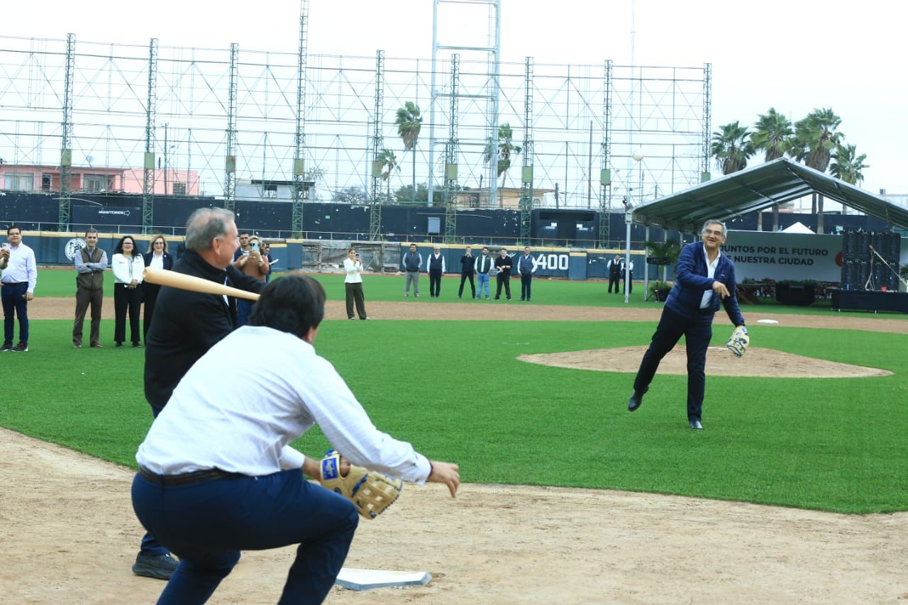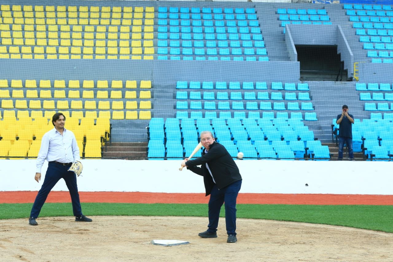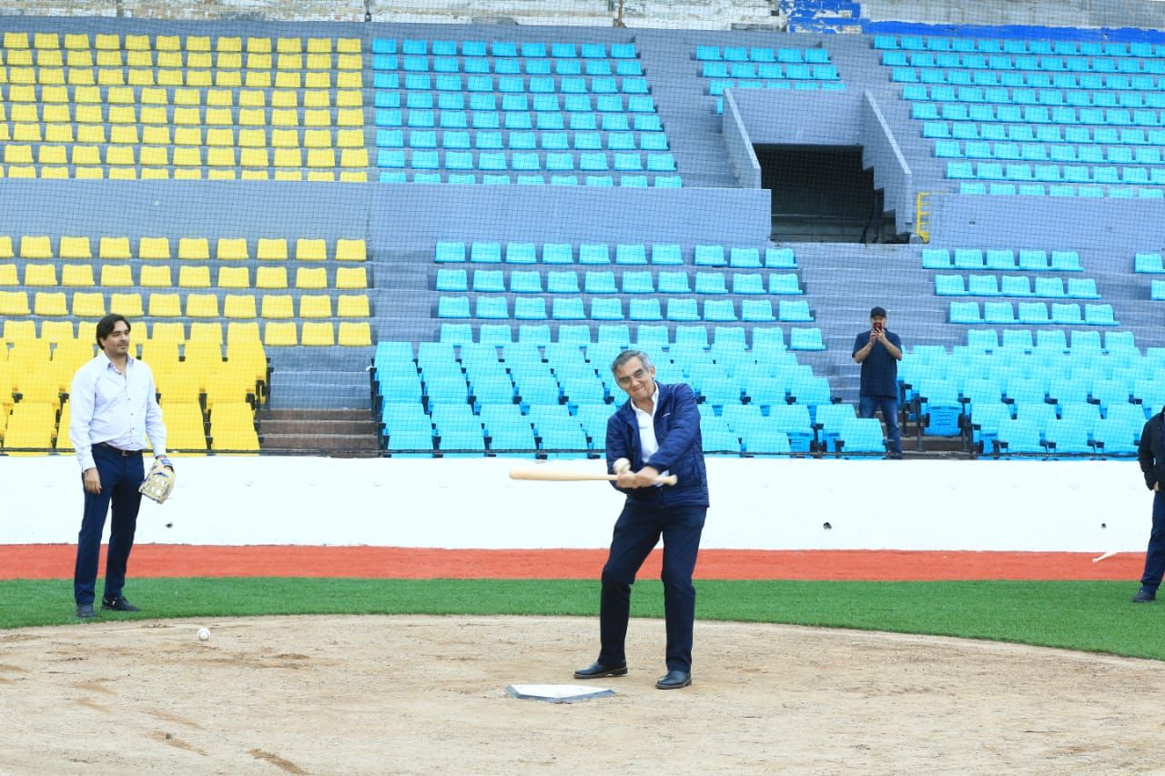 En este magno escenario del béisbol de Reynosa, el gobernador Américo Villarreal reiteró su compromiso para impulsar la actividad deportiva de las y los tamaulipecos. También tomó el guante para realizar el lanzamiento de la primera bola y después fue a la caja de bateo para conectar de hit.