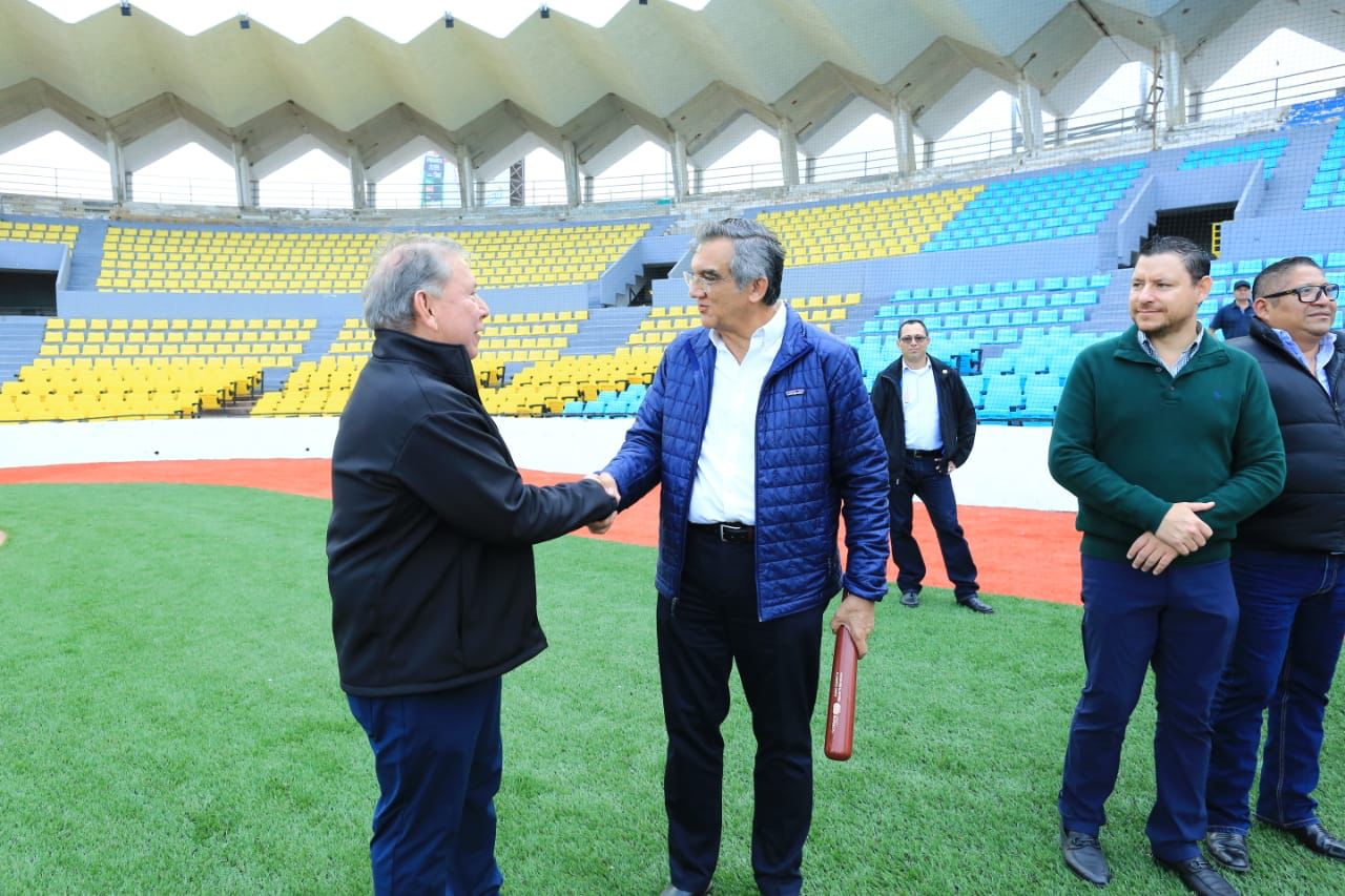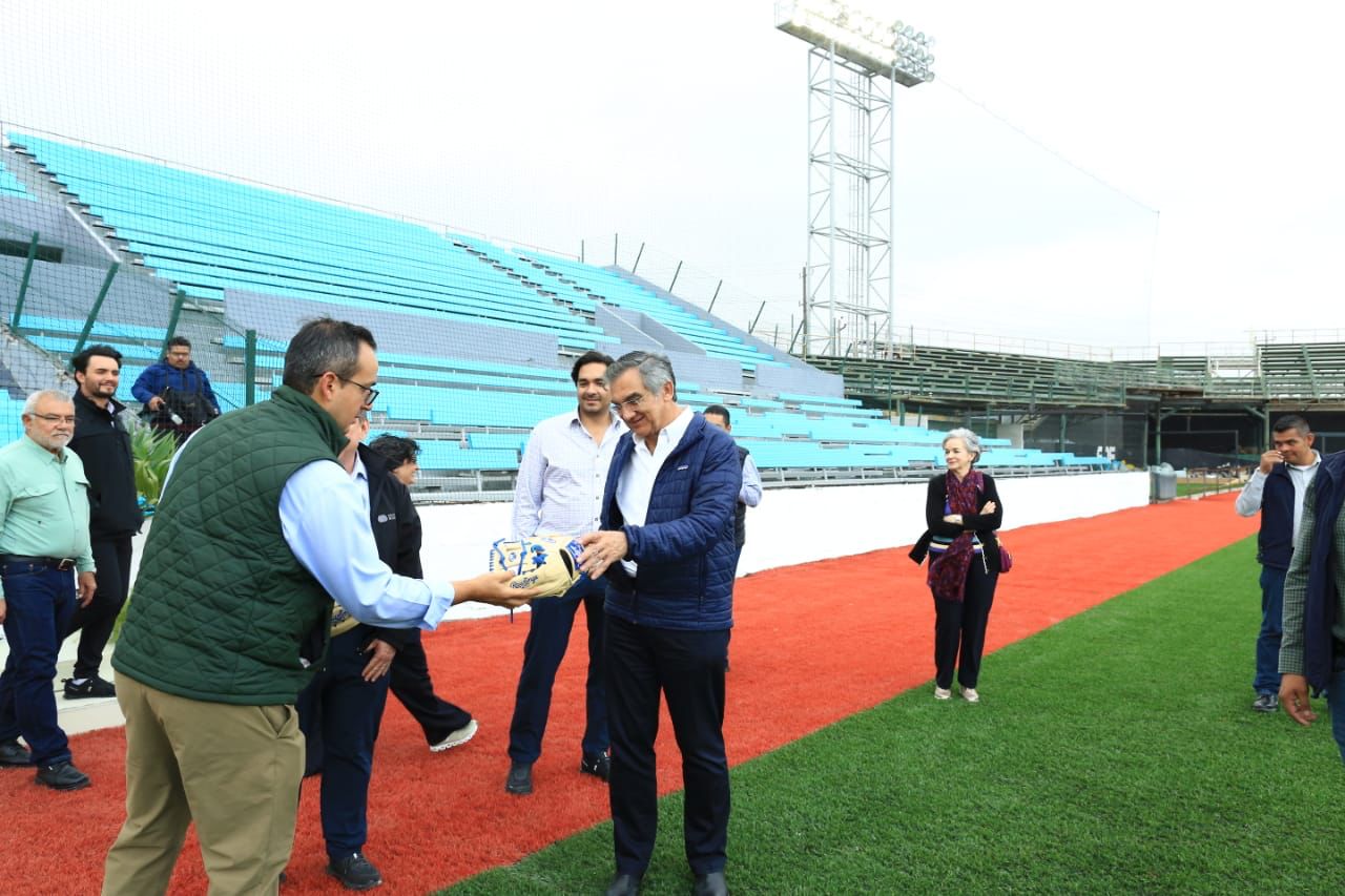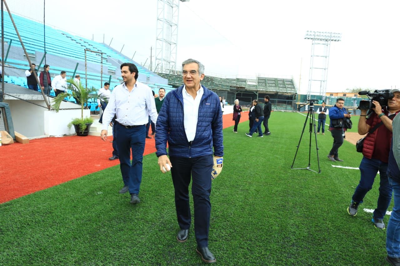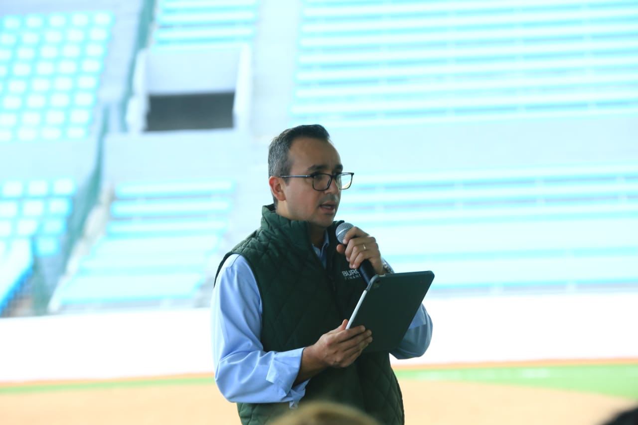 Por la tarde, el gobernador visitó el Parque de Béisbol “Adolfo López Mateos”, donde recibió una amplia explicación de los trabajos de remodelación que realiza el Grupo Burgos.
