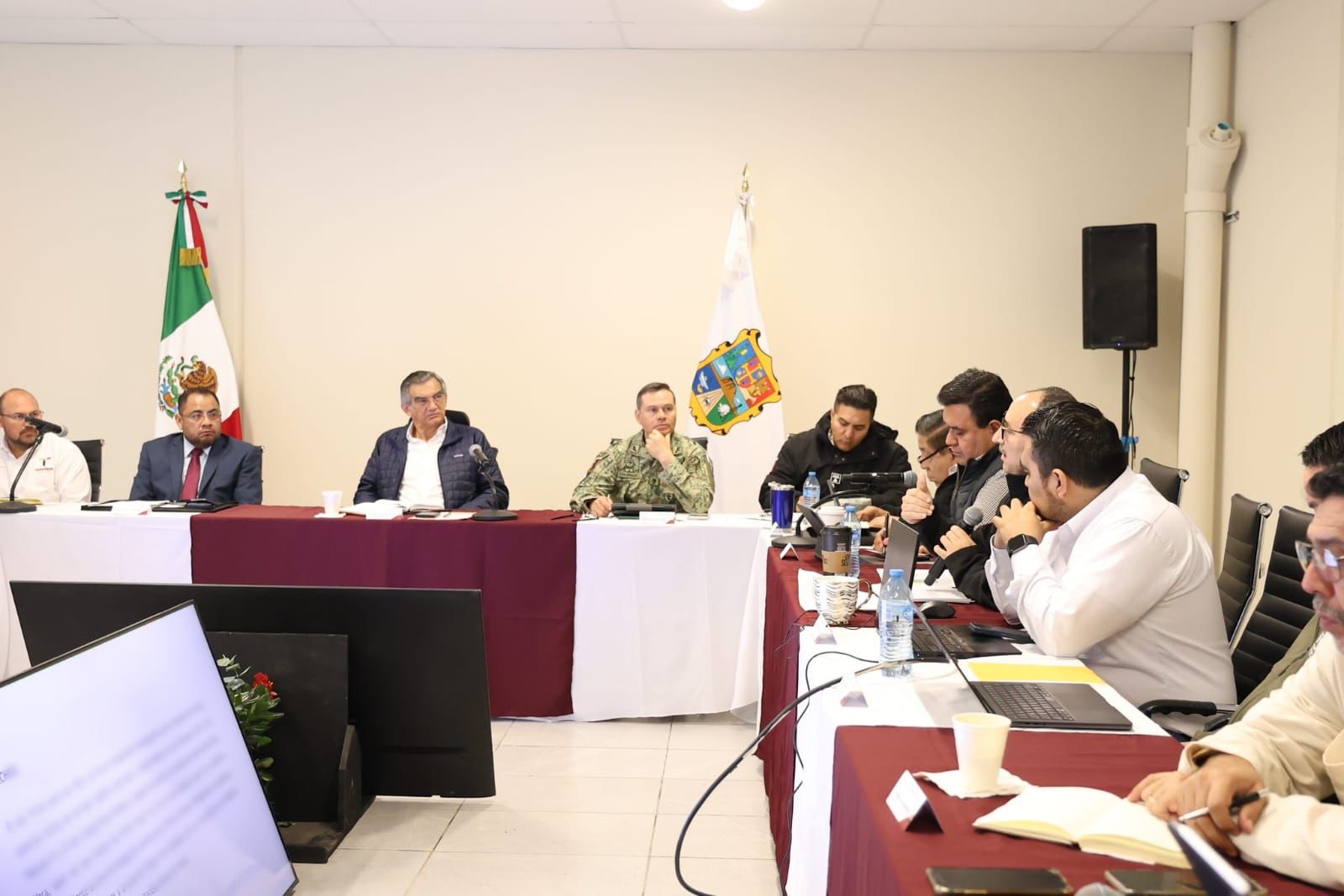 En su primera actividad de este miércoles, el gobernador encabezó la Mesa de Seguridad junto con mandos de las fuerzas armadas y el alcalde Carlos Peña Ortiz.